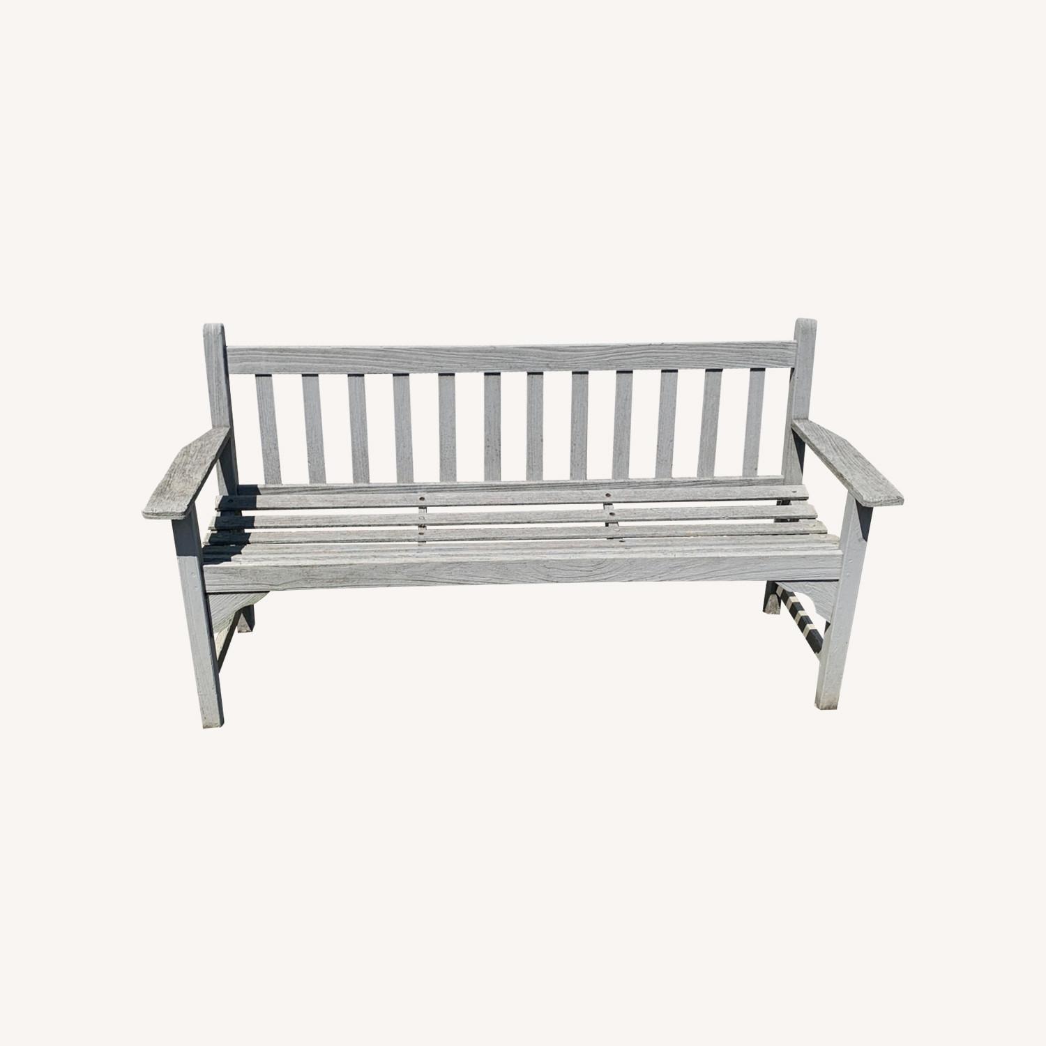 Seller's Notes:Teak outdoor patio garden bench! This wooden Smith and Hawken bench has slatted best and back. With a naturally weathered gray patina of about 20 years. Solid, very sturdy construction. it will be a beautiful vintage addition to your garden or patio!