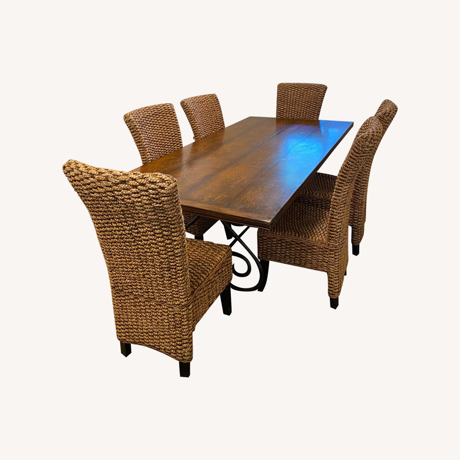 Seller's Notes:Beautiful, heavy, high quality dining table. Intricate iron base with hardwood table top. Selling because we are moving to an apartment and will need smaller furniture.