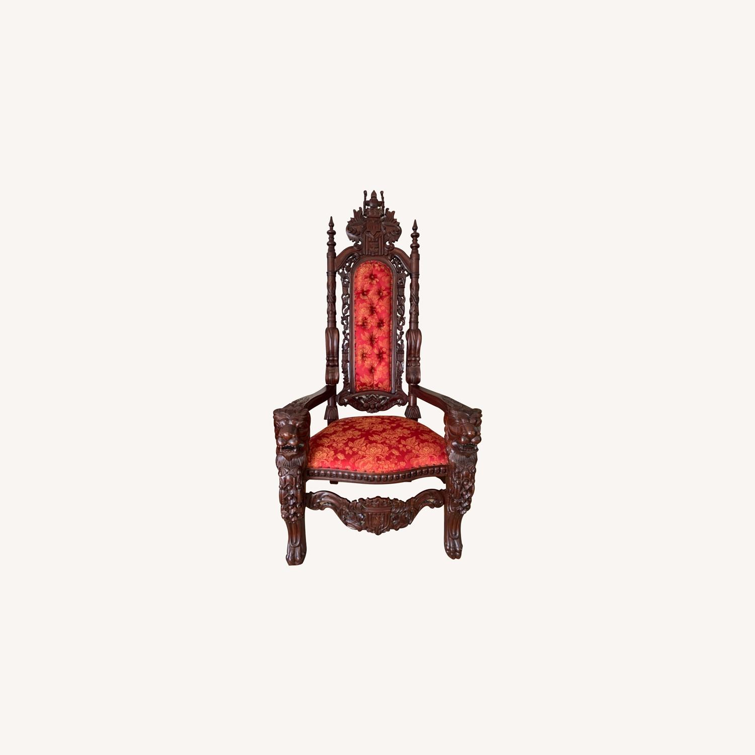 Seller's Notes:Ornately carved vintage mahogany throne. Excellent condition, rarely used, very slight nicks - hardly noticeable. Great conversation piece. Would make a terrific chair for Santa!