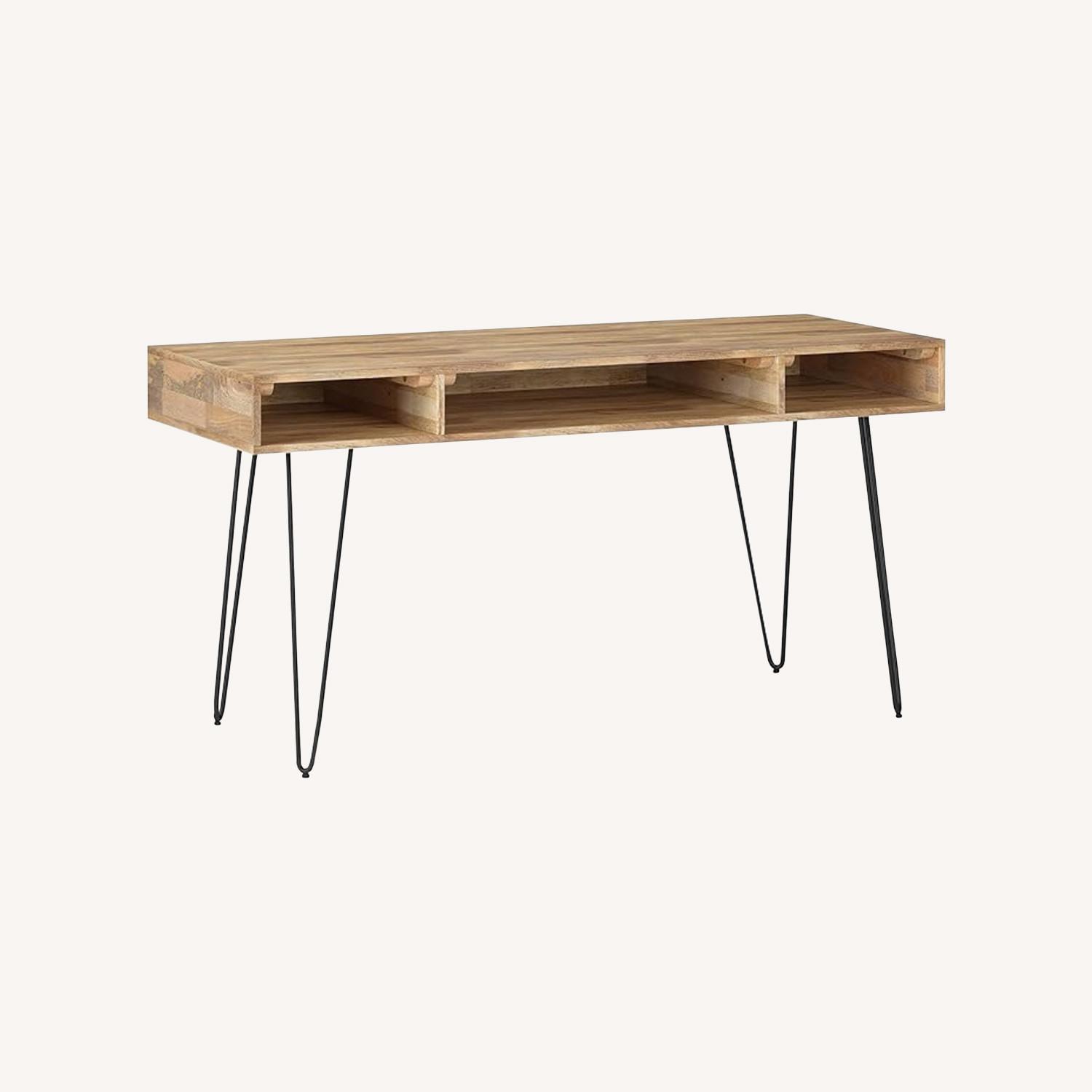 Seller's Notes:Stylish and sturdy solid mango wood desk with black hairpin legs. Ideal for work-from-home setups, creative studios, or minimalist interiors.