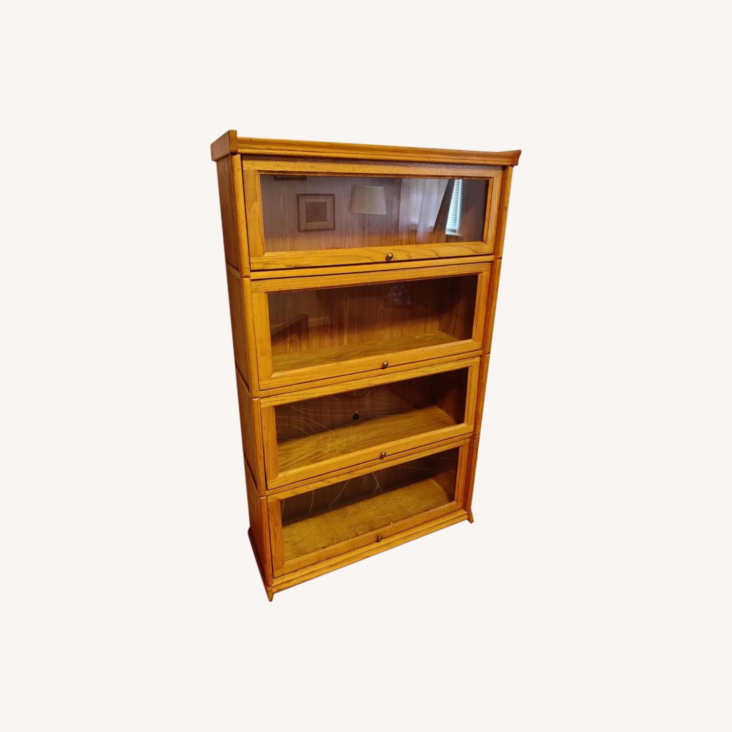 Seller's Notes:Very nice Barrister style bookcase. Unlike a traditional one, it is all one piece, the levels do not separate. Nice solid oak wood. All the doors on the levels work, but one is missing a magnet. Keep all your books dust free!