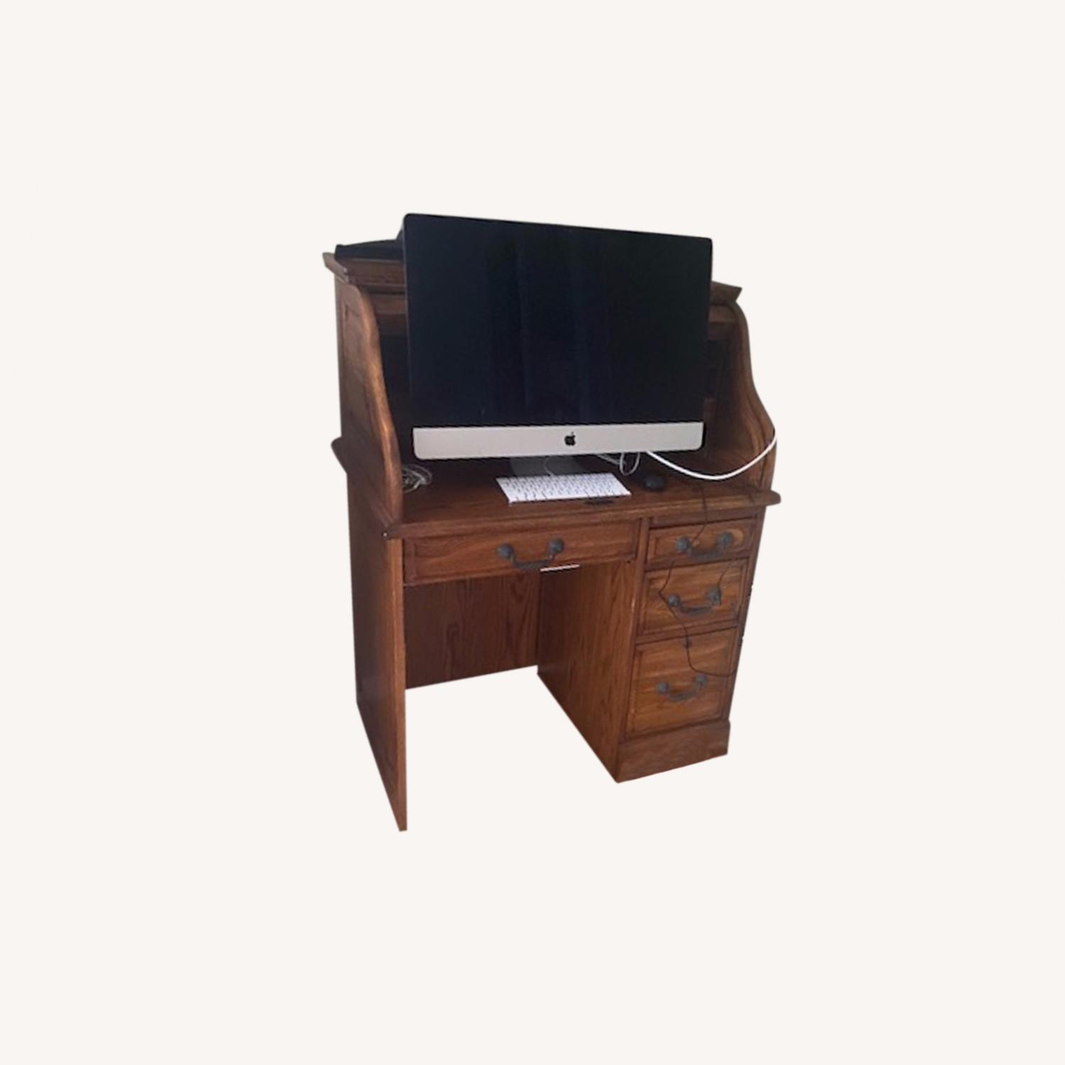 Seller's Notes:Hardly used solid oak roll top desk in great condition with a solid oak chair