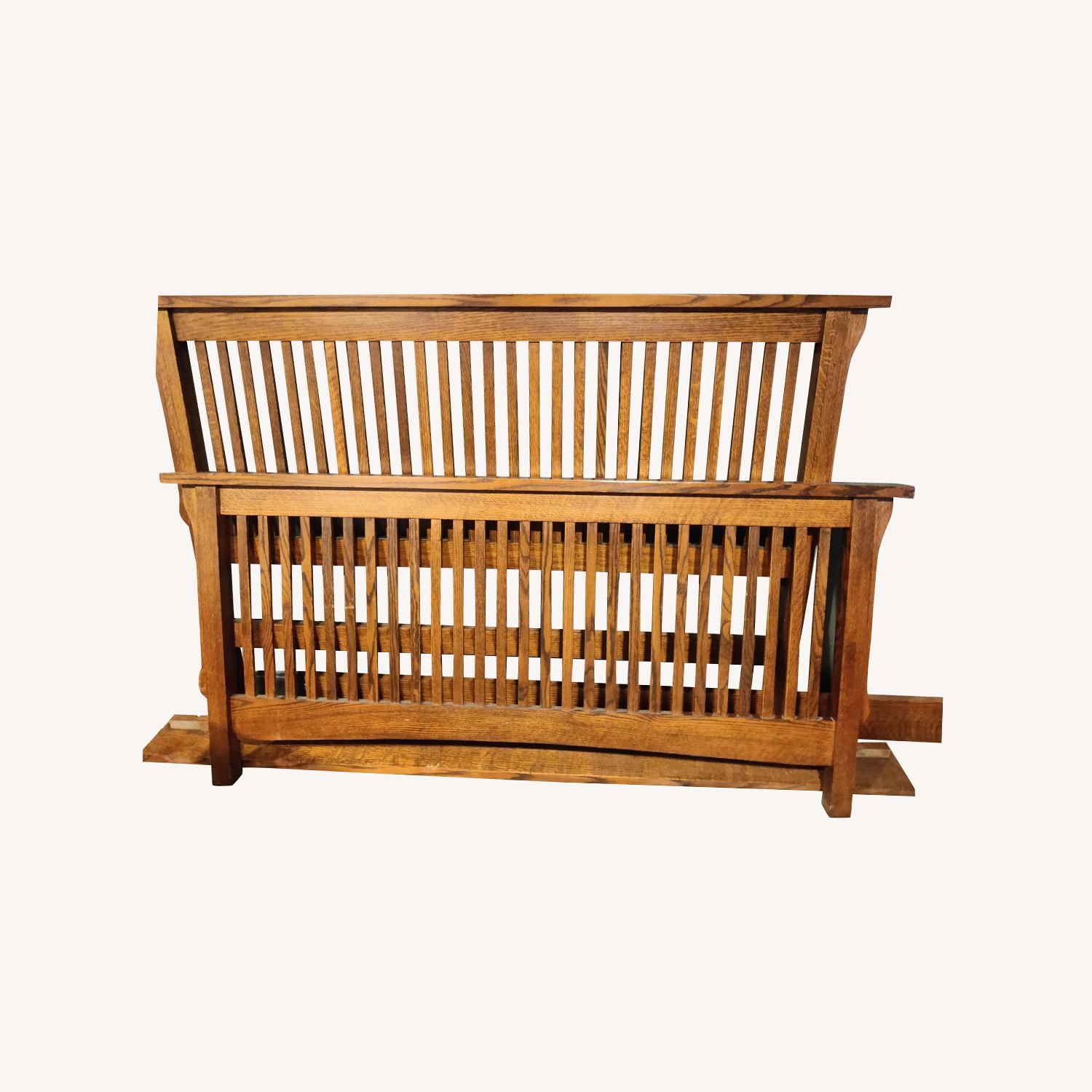 Seller's Notes:Solid Oak Stickley Headboard and Footboard, Shaker style with wood frame. In great condition.
