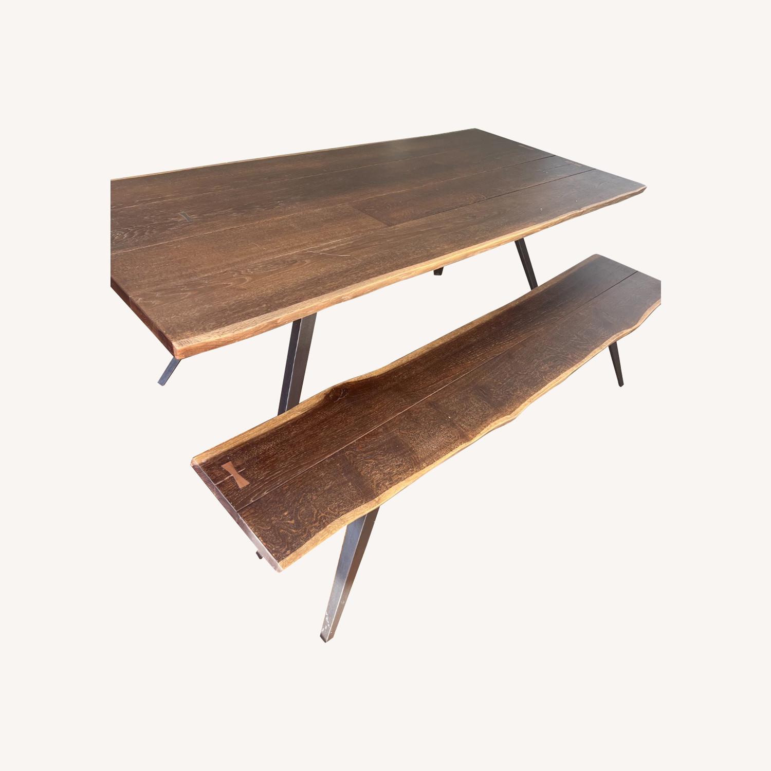 Seller's Notes:Magnificent and stunning seared oak and cast iron Vega table, less than one year old. This beautiful piece is spectacular and stunning with natral wood textures and contours. Table original cost $3,500. Dimensions 82x38x30. Unfortunately does not fit in my apartment. Blemishes: there is a finger-long scratch on the surface pictured and can be fixed. The listing is for the table only, if you are interested in the bench you can send a message. The table is a statement piece that everybody remarks on when they visit and I'm sure you will love it. Seats 8-10.