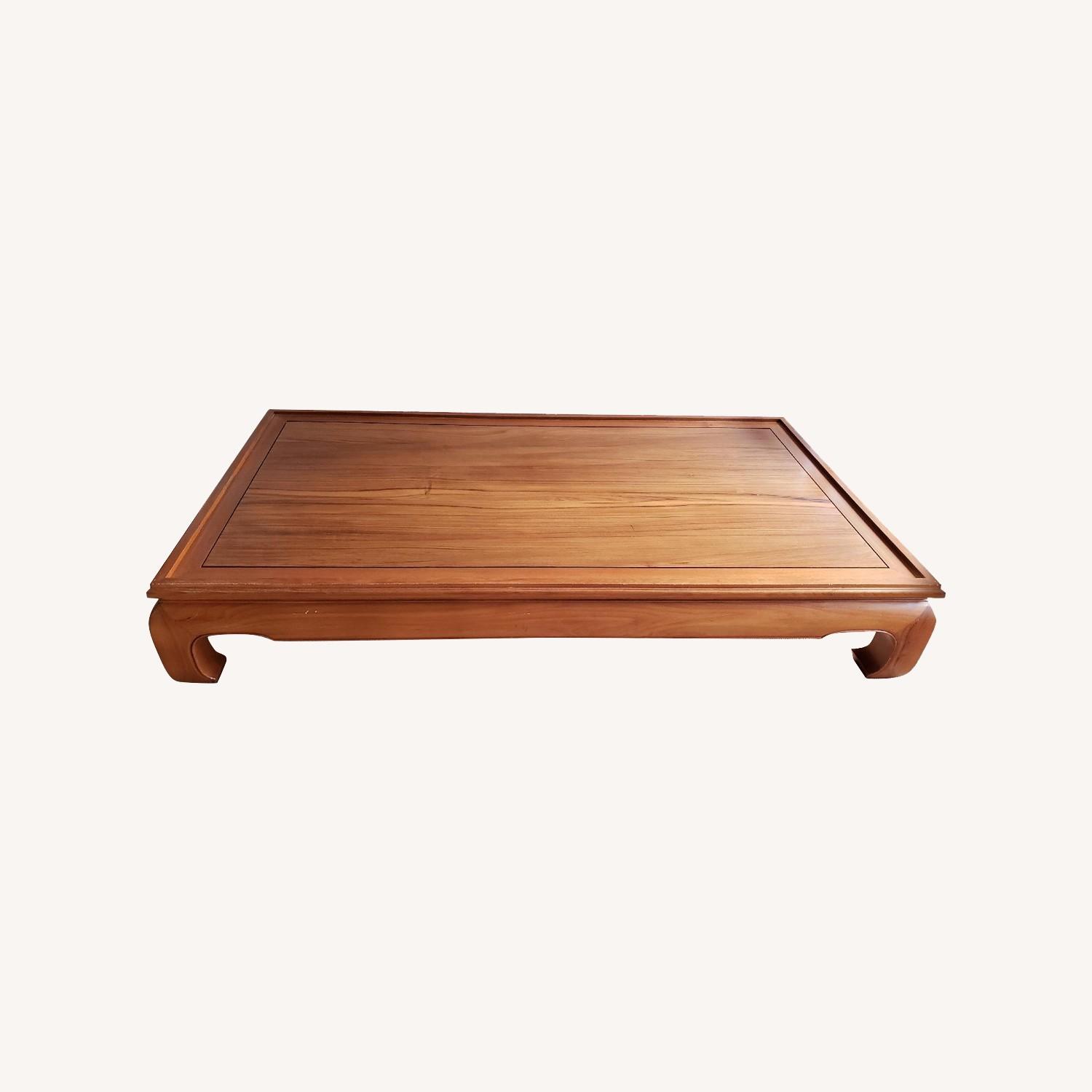 Seller's Notes:My mom bought this bed frame in Thailand in the 90s and had it shipped to the states - it's the real deal. Solid Teak, I suspect. Several white primer scratches from the wall that I think would come off with a little scrubbing. Several nicks and scratches from cats and life in general, that are clearly permanent. Could be used as a really big coffee table, under the right circumstances. This is an awesome, unique piece of furniture and honestly I'd keep it if I had room for it in my apartment. Even with all the blemishes it looks fabulous. The quality of the wood is amazing.