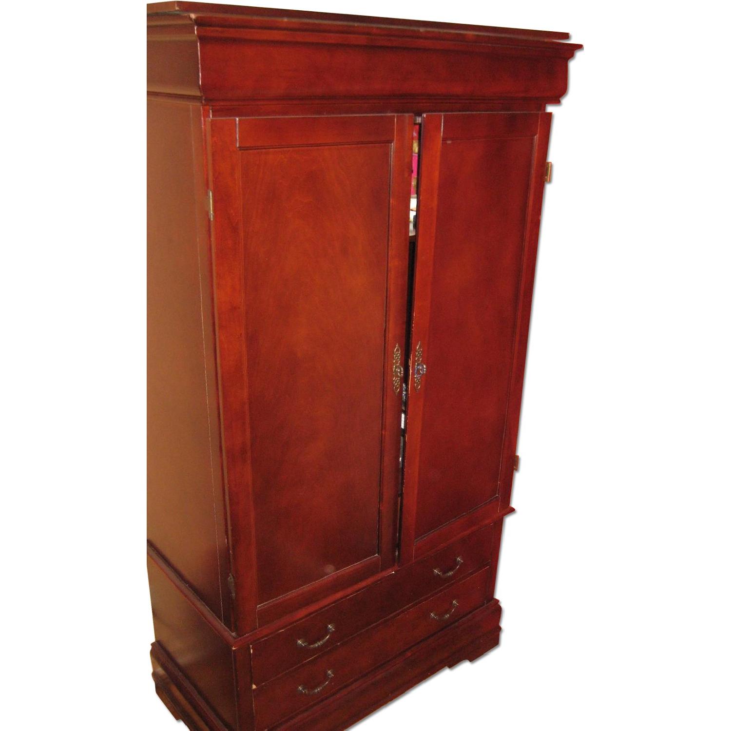 Seller's Notes:Hi! I have a great wood Armoire for sale. It fits up to 40" inch flat screen tv. Its suitable for bedroom! Perfect decor around the house also! I have no use for the armoire anymore and I really do not want to throw it in the garbage. Its in great condition, the only thing is I had to cut of the back of it because of my old TV. Its wood, 2 adjustable shelves, 2 inward shelves to put dvd/blue ray player, cable box & 2 drawers to put dvds, cds or for storage. Please help me find this a great home. actual pictures below.