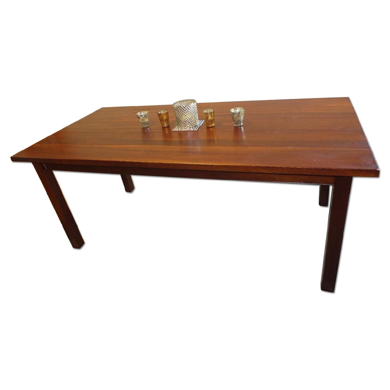 Seller's Notes:Fantastic well built 8 seat table. It is a few years old and is made from high quality solid wood. The table is still in fantastic condition, with a couple of only minor surface scratches that only adds to the charm of this genuine piece. I've included close up photos of where a small scratch exists. Legs to the table are removable for easy transportation. Table dimensions: Height: 30 inches Width: 74 inches Depth: 36 inches