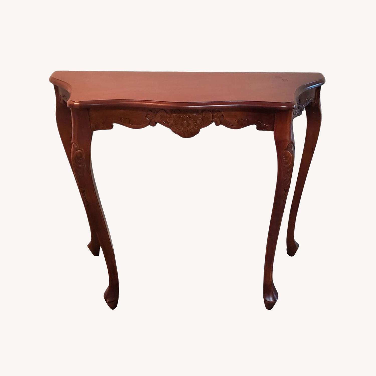 Seller's Notes:Crafted from hand-carved hardwood for indoor use Rich dual walnut stain for a premium finish Elegant, traditional design that adds character to any space Ideal for hallways, living rooms, bathrooms, or bedrooms