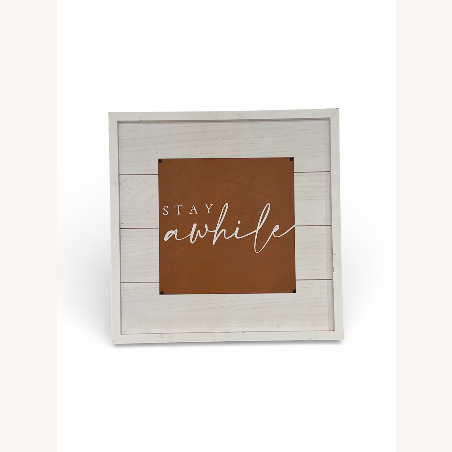 Seller's Notes:Custom-Made Solid Wood Picture Frame Details: • Message: “Stay Awhile” • Material: Solid wood, ensuring durability and quality. • Design: Thoughtfully crafted with a modern aesthetic, making it a beautiful focal point in any room. Perfect For: Living rooms, entryways, or as a thoughtful gift for friends and family. Elevate your space with this unique piece that invites relaxation and comfort. Don’t miss the chance to own this exquisite custom creation!