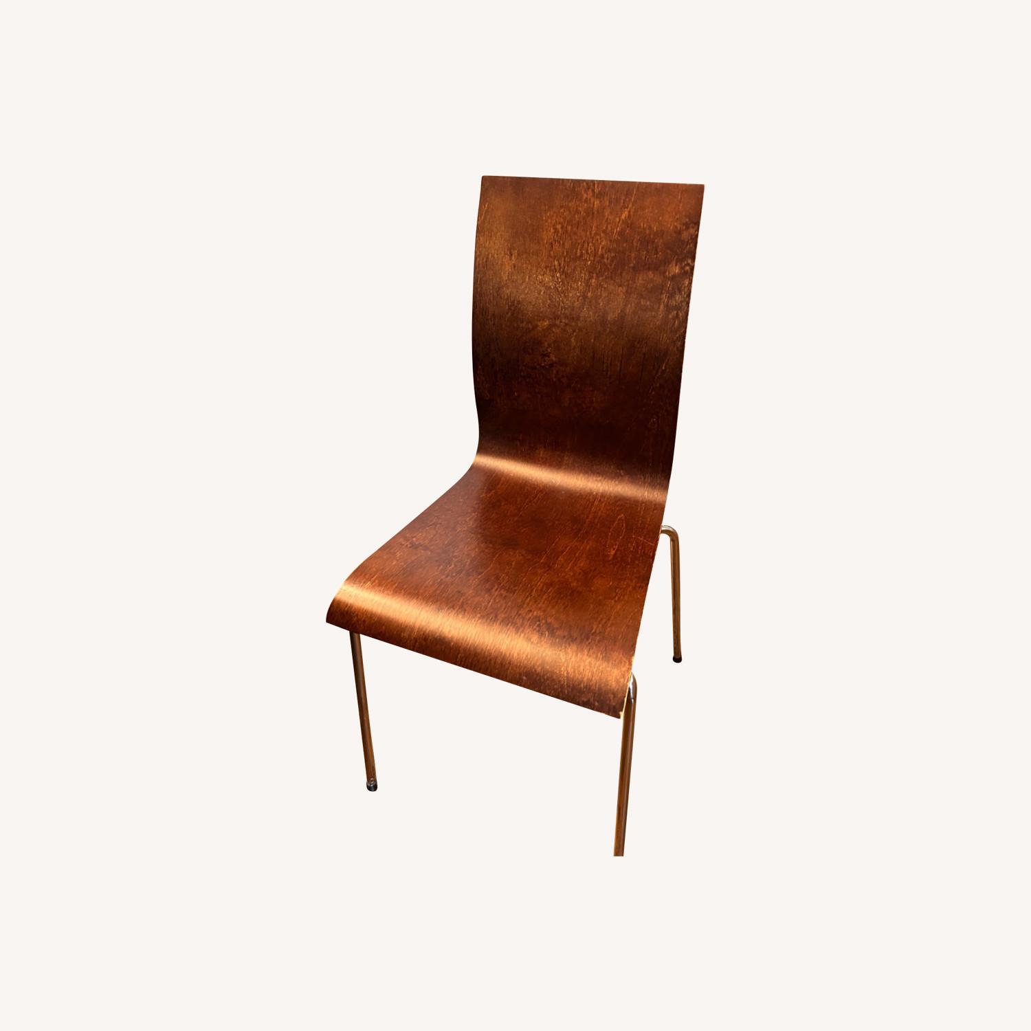 Seller's Notes:Enjoyed apartment living for many years, serving primarily as extra seating for family holiday gatherings. Sturdy solid wood with metal legs, these are substantial chairs that can handle daily living for dinner, desk or as side chairs. They stack up neatly, a great space saver and polish up real nice