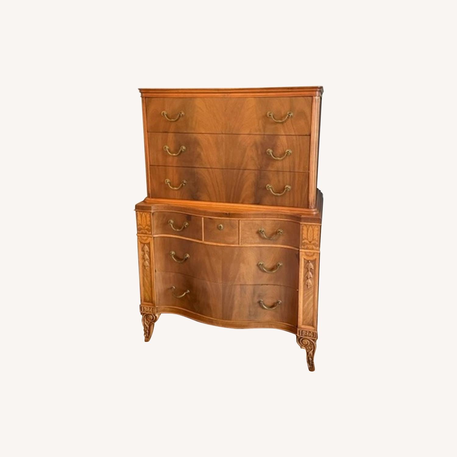 Seller's Notes:Solid wood antique dresser, fully refinished several years ago. Nice inlay detail.