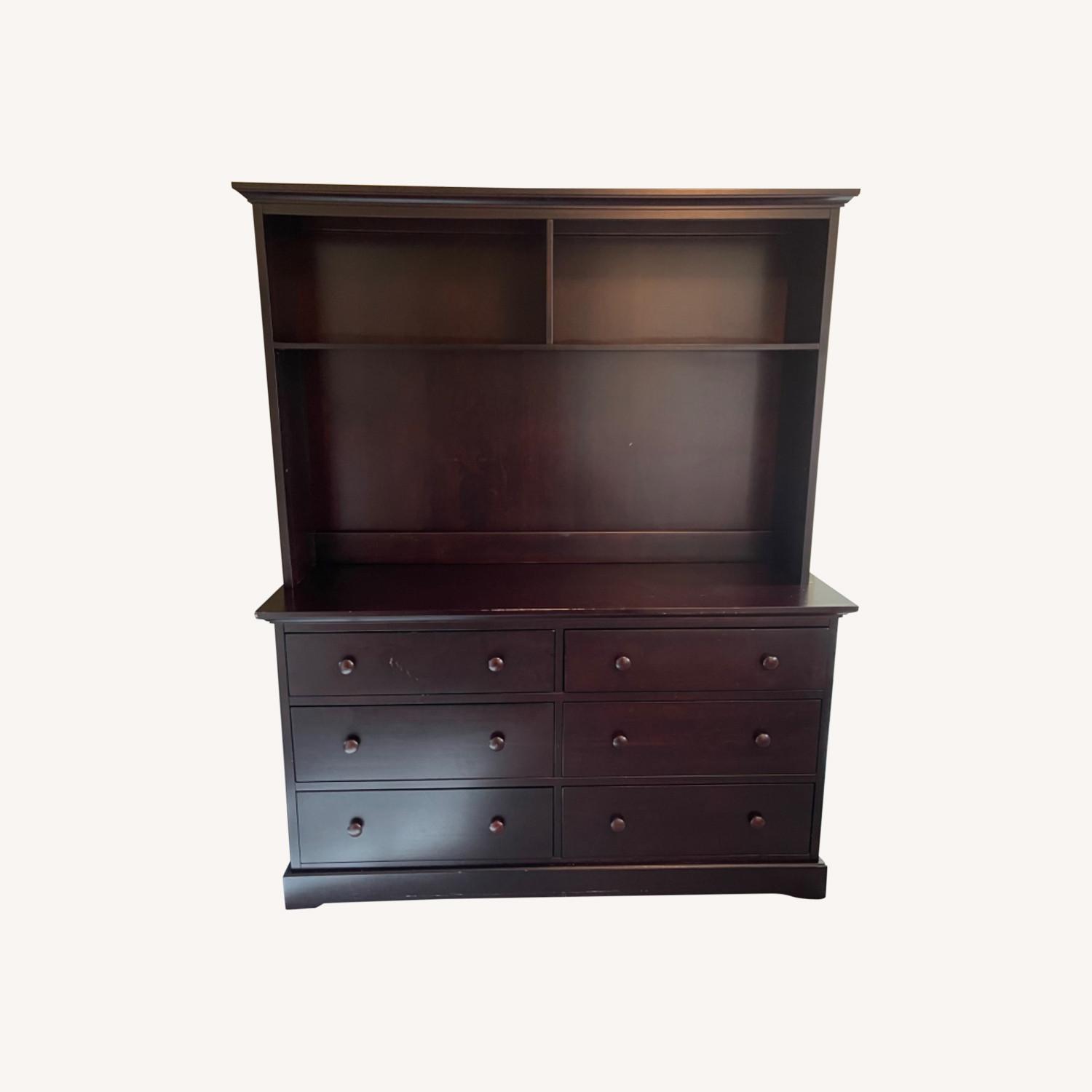 Seller's Notes:We’ve downsized and this does not fit. Well made piece, solid wood,…not mdf or plywood! Chesapeake 6 drawer dresser and removable hutch. Muniré brand. Merlot color Dresser 60” w x 34” h x 20” d Hutch crown width 60” Main section 50 1/4” w x 40” h x 11 3/4” d Some knicks in finish One drawer slides without ball bearings but does not affect functionality Cross posted Located in Bath Township Ohio From the manufacturer: At Centennial Nursery, we are truly luxe by design. With the retirement of our Muniré brand, we've re-focused our nursery collections, offering the most lavish nursery furniture as a safe haven of serenity and style. Top of dresser can be used as a changing table during infancy