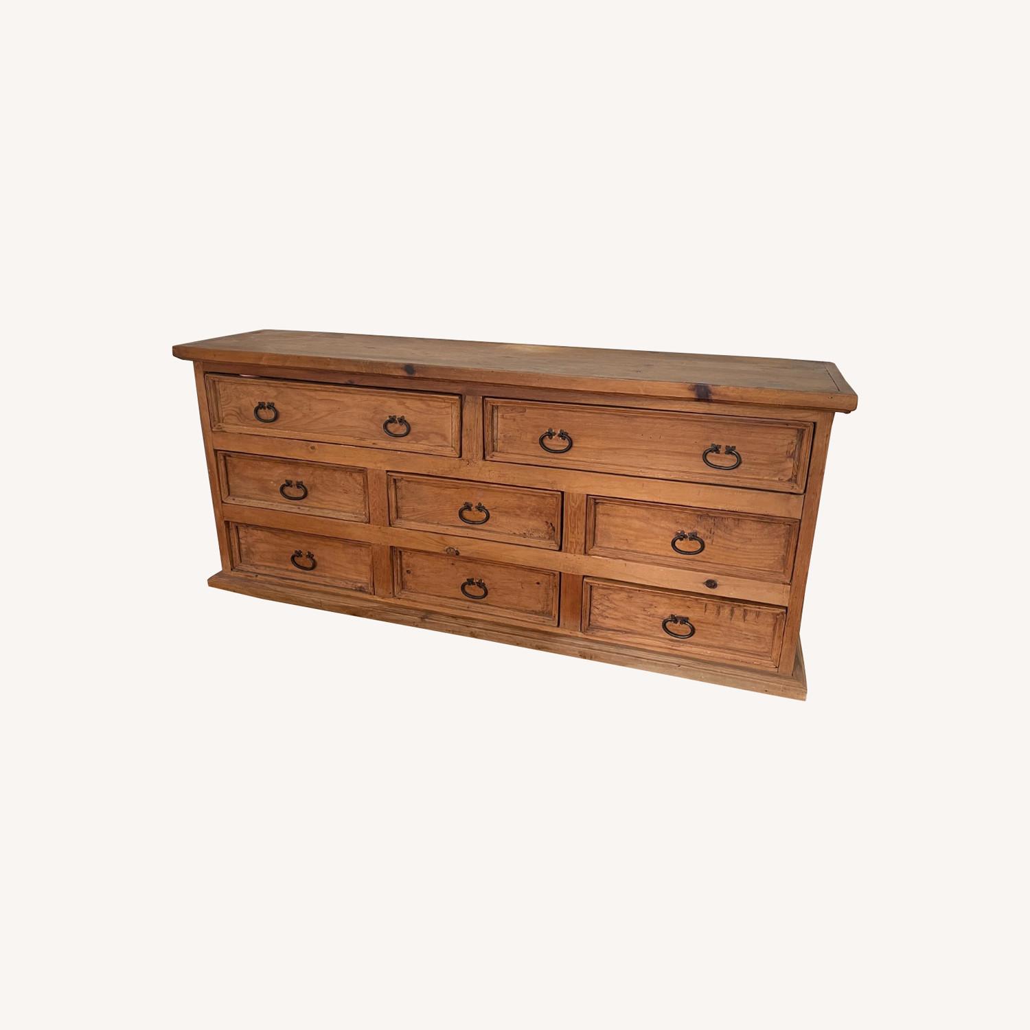 Seller's Notes:Acquired this beautiful dresser three years ago and I am deeply sad to sell it. We are moving to California from NYC and cannot bring it with us due to its heavy weight. It has some distressed markings as seen in photos that adds to its rustic look. Hardware is intact and it does not contain metal slides.
