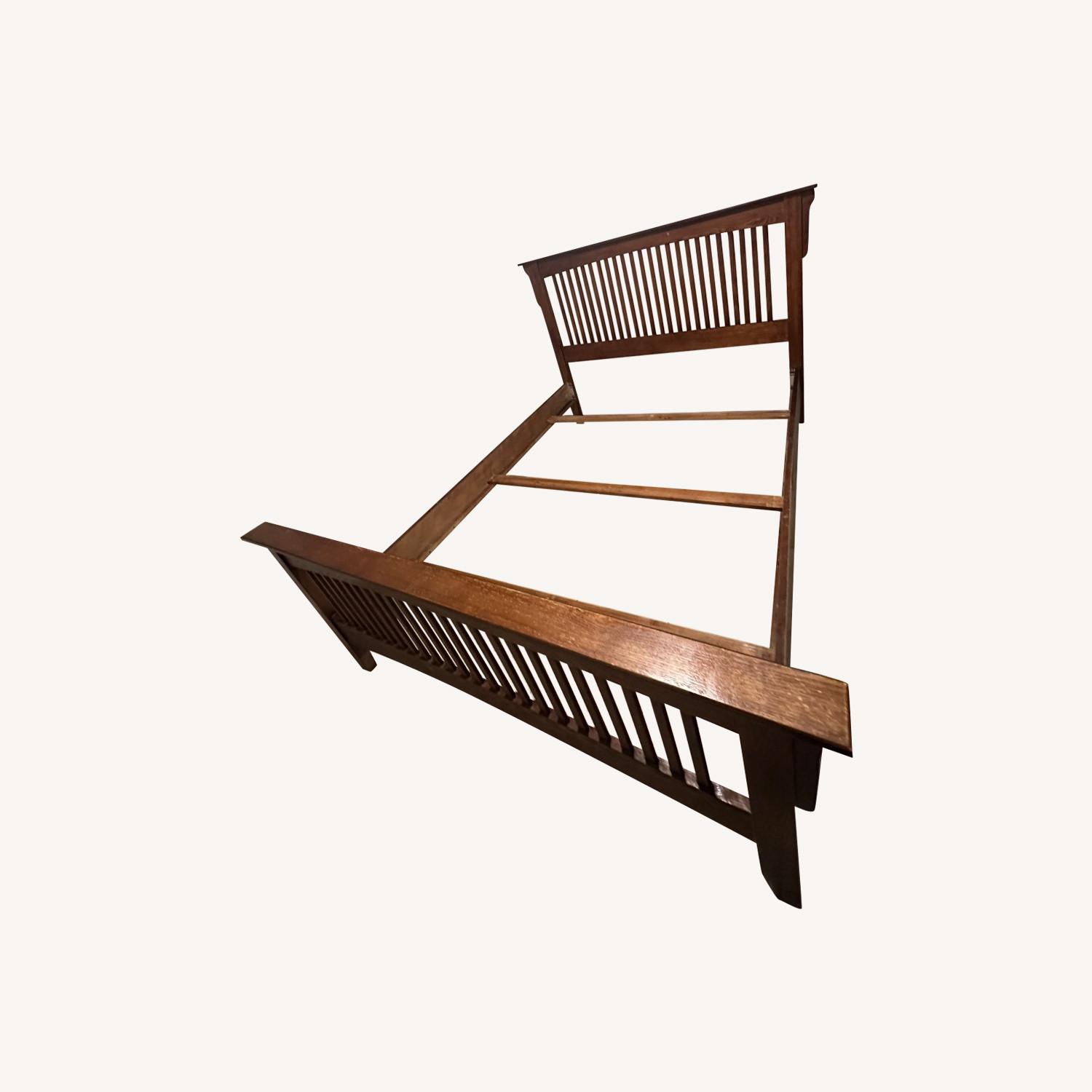 Seller's Notes:This is a solid wood bed frame that is sturdy and strong. Doesn’t wobble. You would not feel the earth shaking on this thing. Minor scratches.