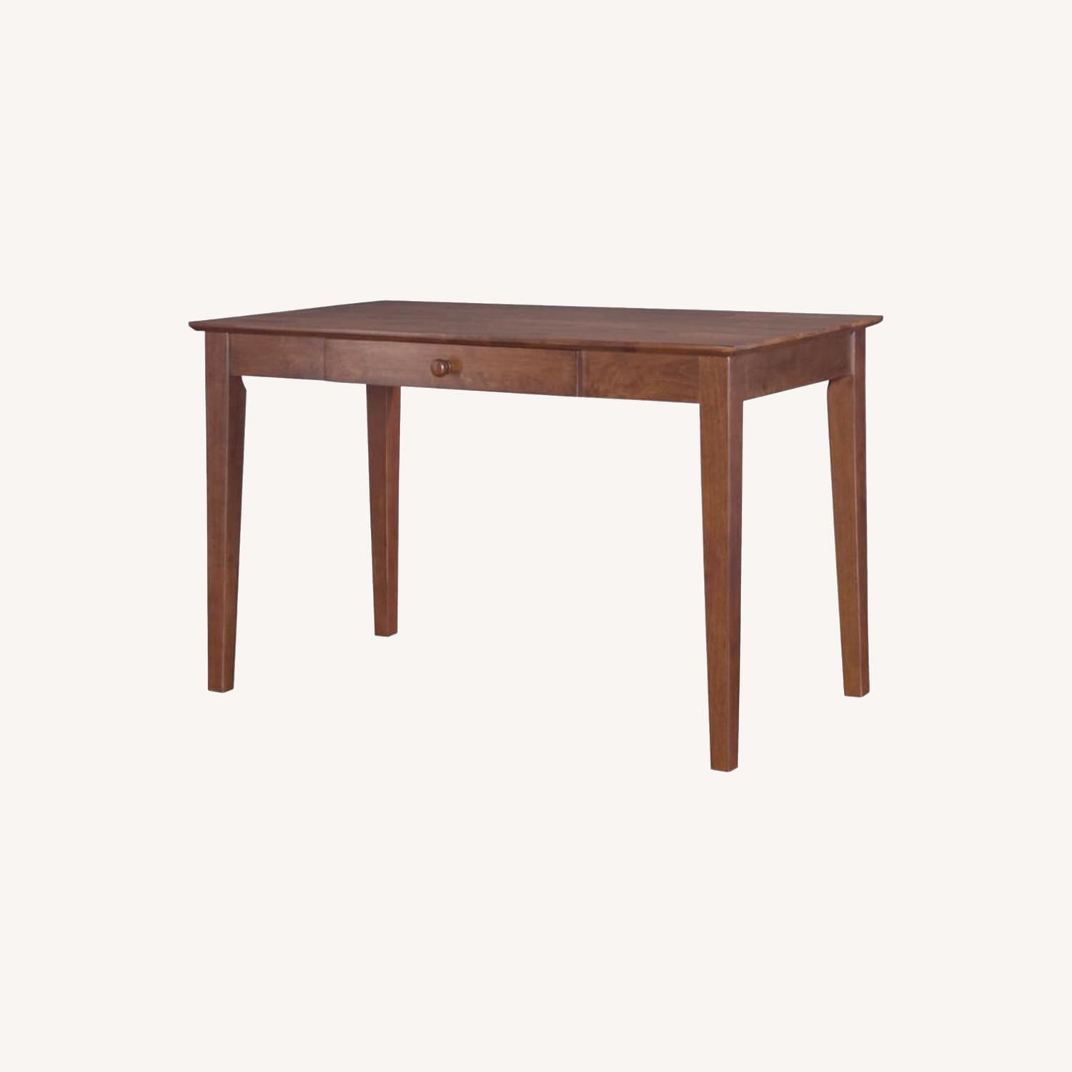 Seller's Notes:We’ve used this beautiful desk both for work and additional counter space. It doesn’t fit in our new home, and we’d like to find it a great new one! Note that it was custom built as a 39.5-inch-tall standing desk, so the manufacturer's picture does not reflect the height or the custom finish, which is more reddish-brown, as seen in the other pictures.
