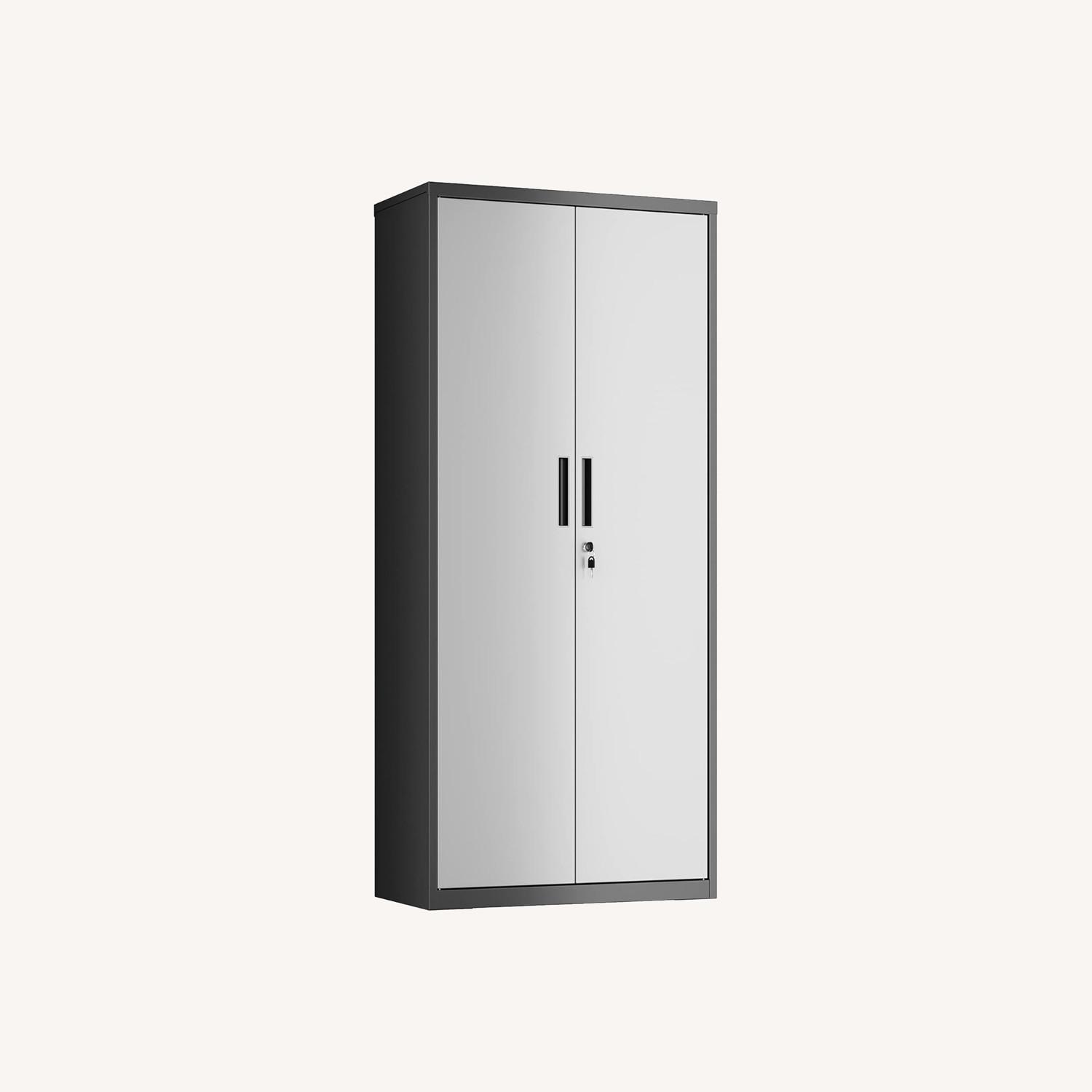 [Versatile Use] For your ever-changing storage needs, this cabinet offers versatility in the garage or workshop for garden tools and sports equipment, in the laundry room for linens and soaps, or in the kitchen for canned food and cups