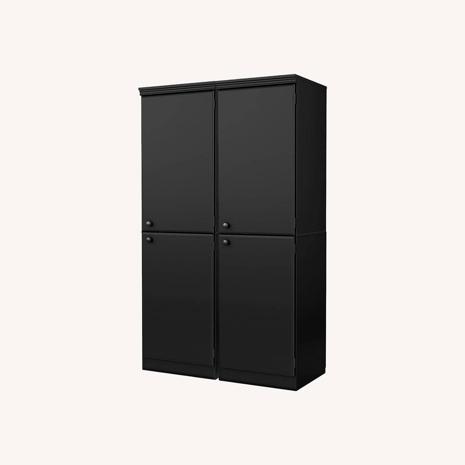 Seller's Notes:South Shore Morgan Heavy Duty Storage Cabinet TWO QUANTITY Cabinets, displayed side by side. This heavy duty storage cabinet is both stylish and practical, perfect for all storage needs in tight spaces. Thanks to its transitional style, it works well in any room, whether it is the office, bedroom, basement, or even the garage. Metal handles in a Black finish. Behind each door are three storage spaces separated by two adjustable shelves. Brand South Shore Color Pure Black Product Dimensions 21"W x 19.5"D x 72.5"H (each) 42.5"W (combined) Super sturdy, I used these for art supply storage. A few cosmetic dings here and there, but easily touched up with a little black paint. Material is a really dense press wood. A lot sturdier than your average IKEA piece. Pickup in Sunnyside Queens - 41st Street near Skillman Avenue, right across from the PS 150 basketball court. Please reach out with any questions. Thanks!