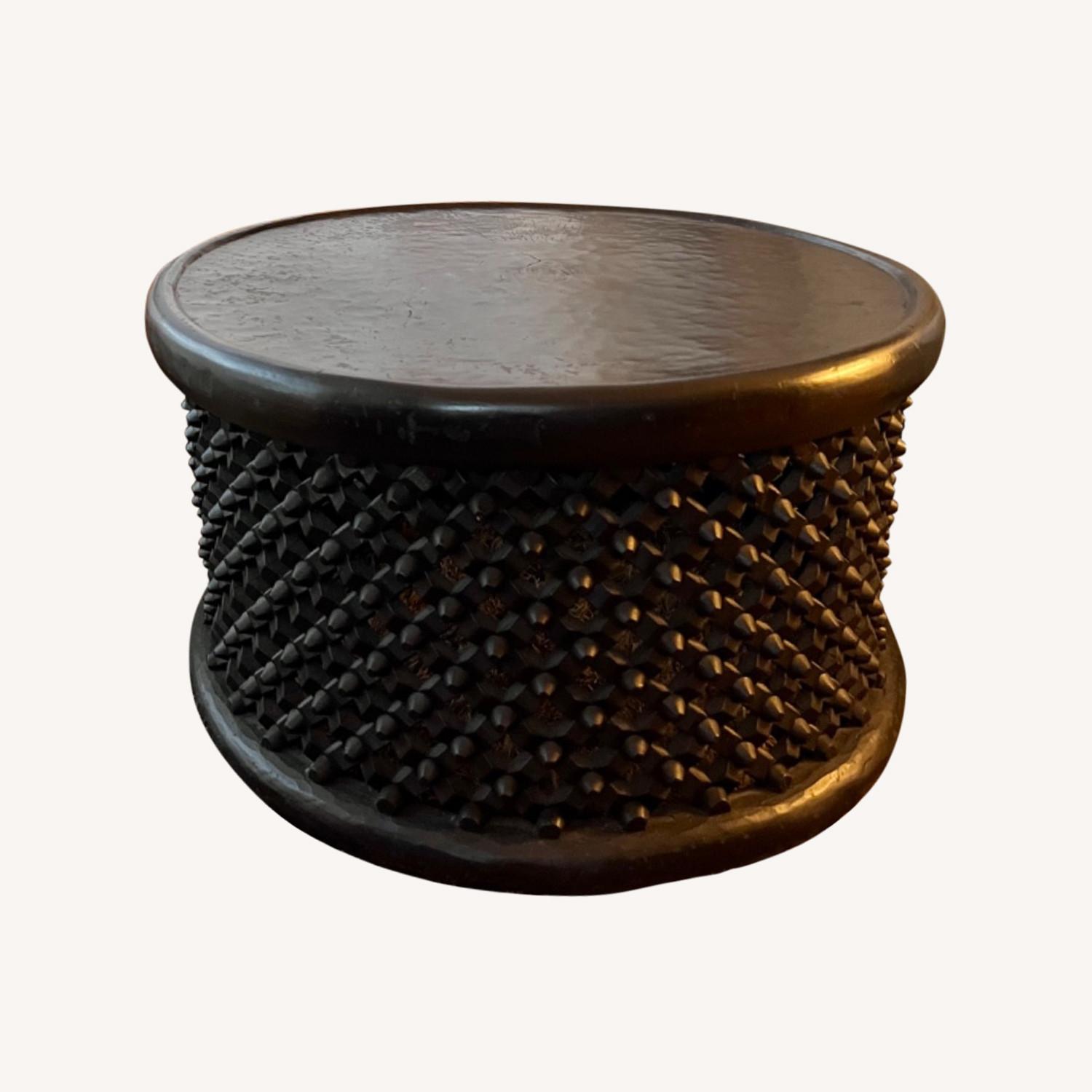 Seller's Notes:This ebonized acacia coffee table with lattice carvings speaks of the story where it was the female spider who wove the web which caught creation. Each carved table is unique.