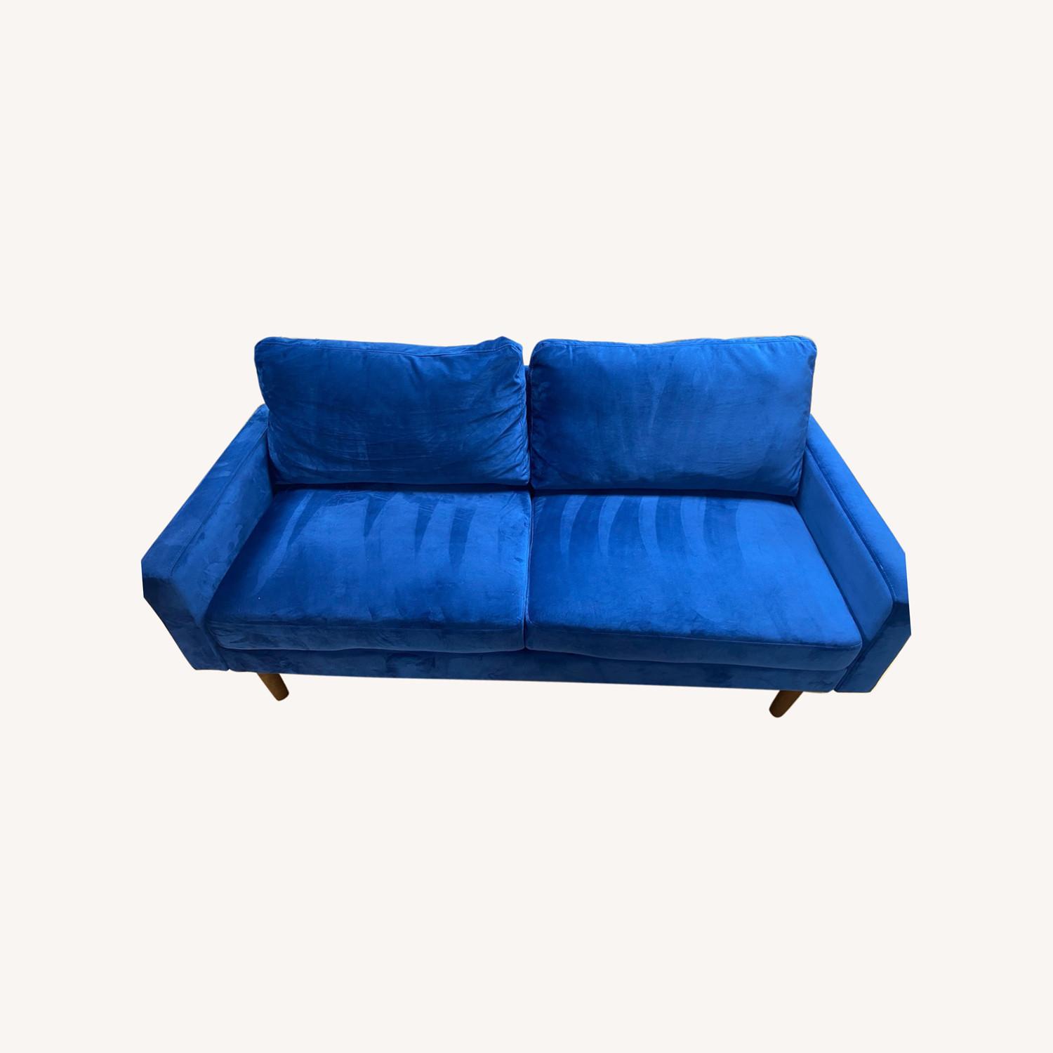 Seller's Notes:Spotless Blue Velvet Wayfair Sofa. Barely used from smoke free, pet free office. Really comfortable, very cute. Really adds a pop of color to any space!