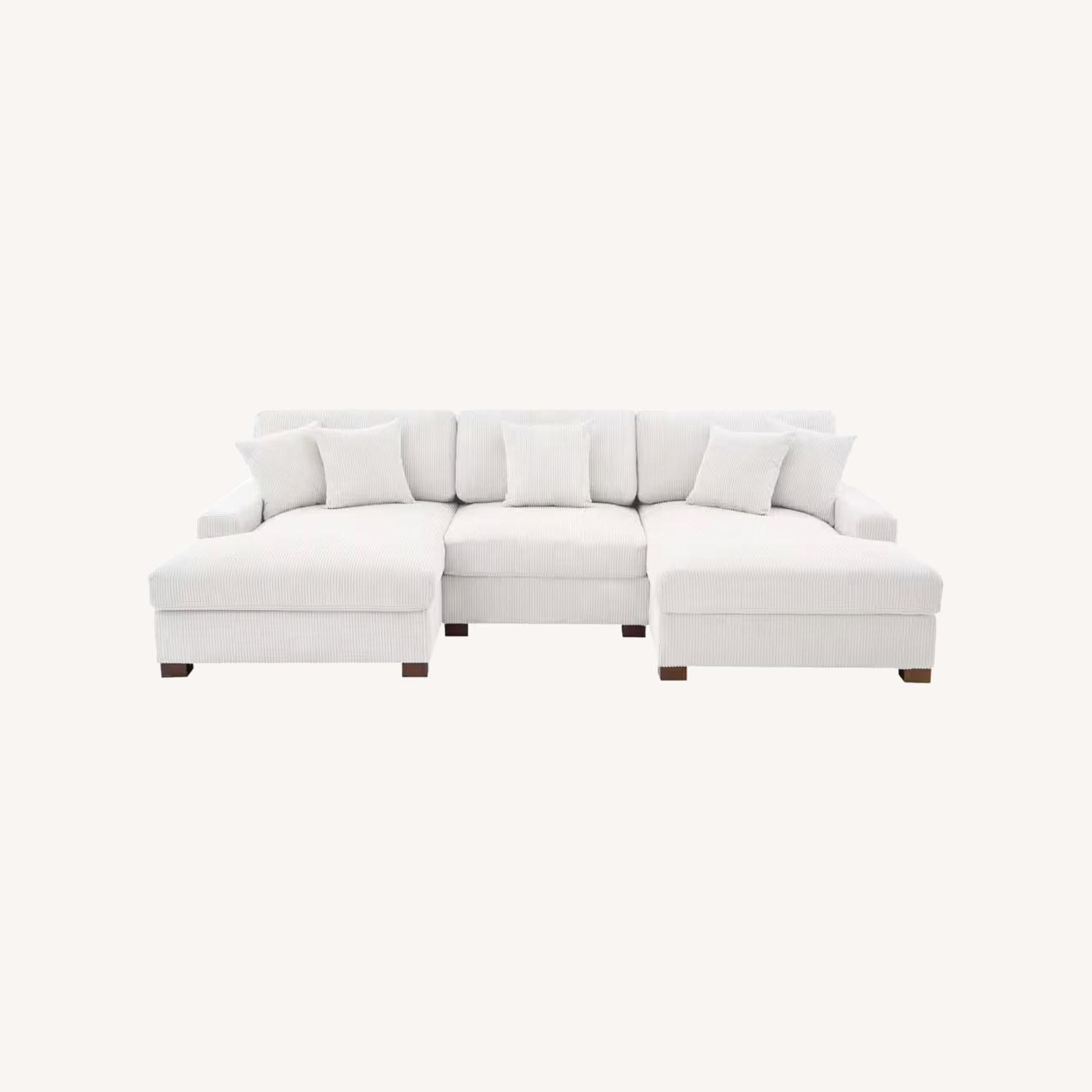 Square Arm 3-Piece Corduroy Upholstered U-Shaped Sectional Sofa