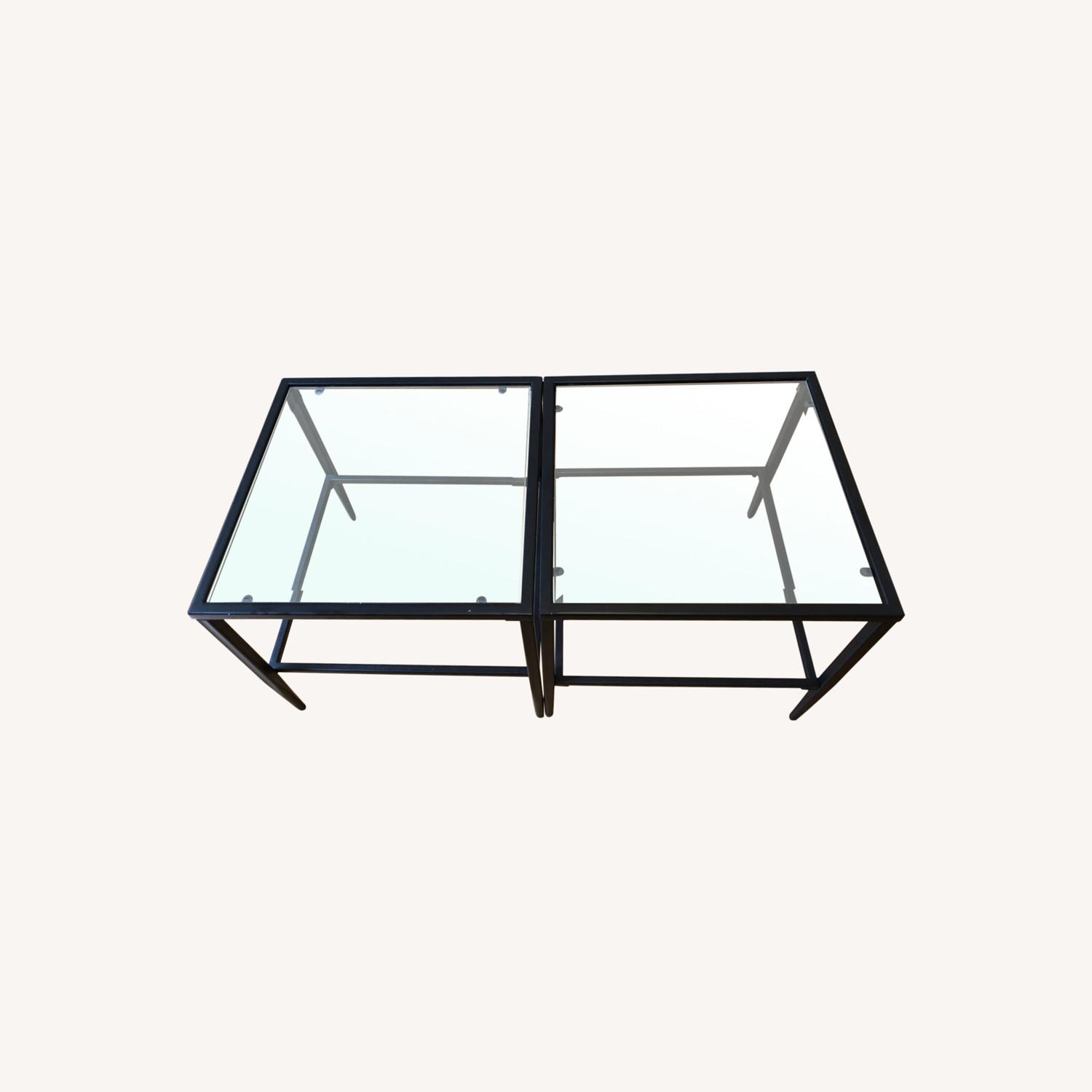 Seller's Notes:Two glass side tables combine to make the perfect coffee table.