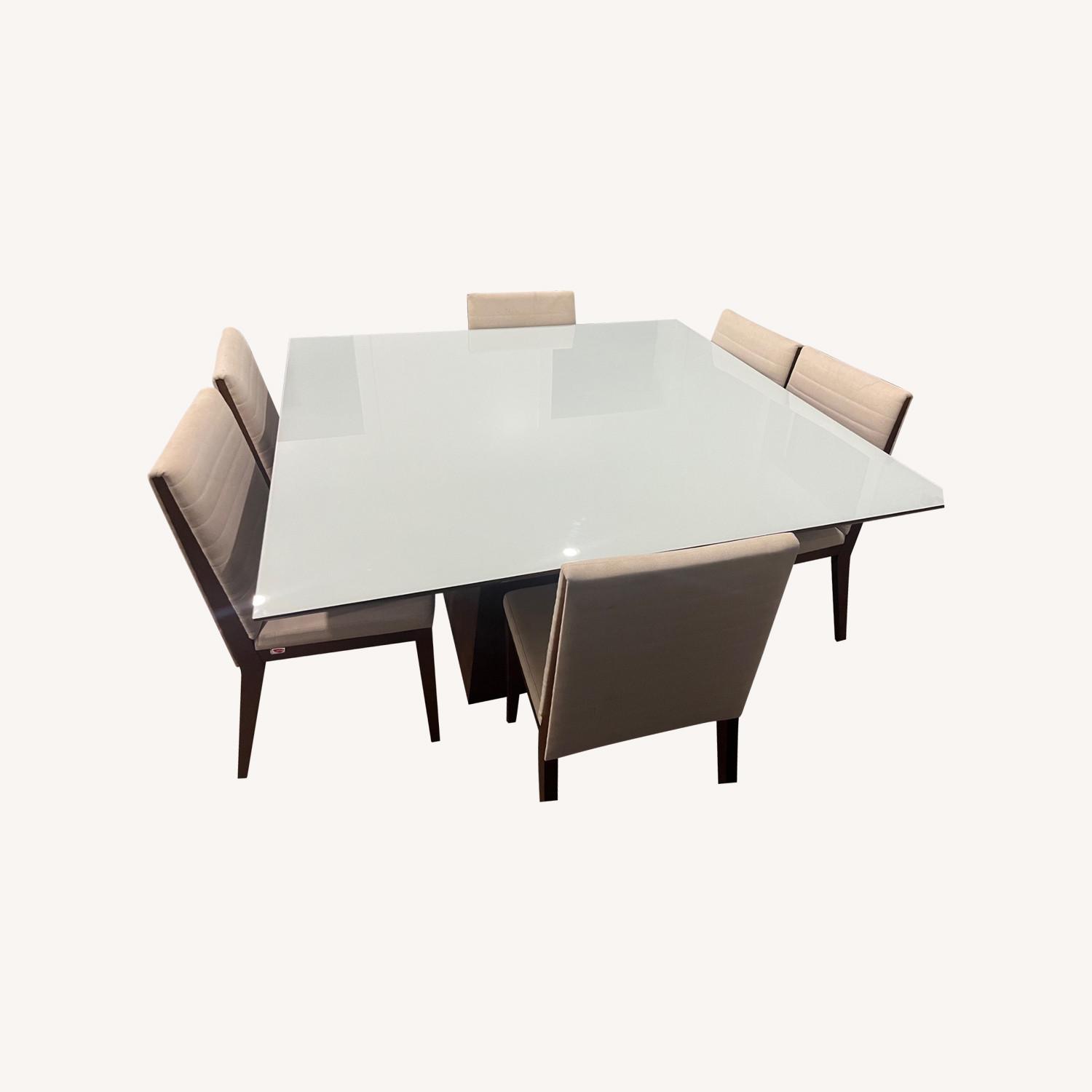 Square Wooden Table with Glass Top + 6 Chairs