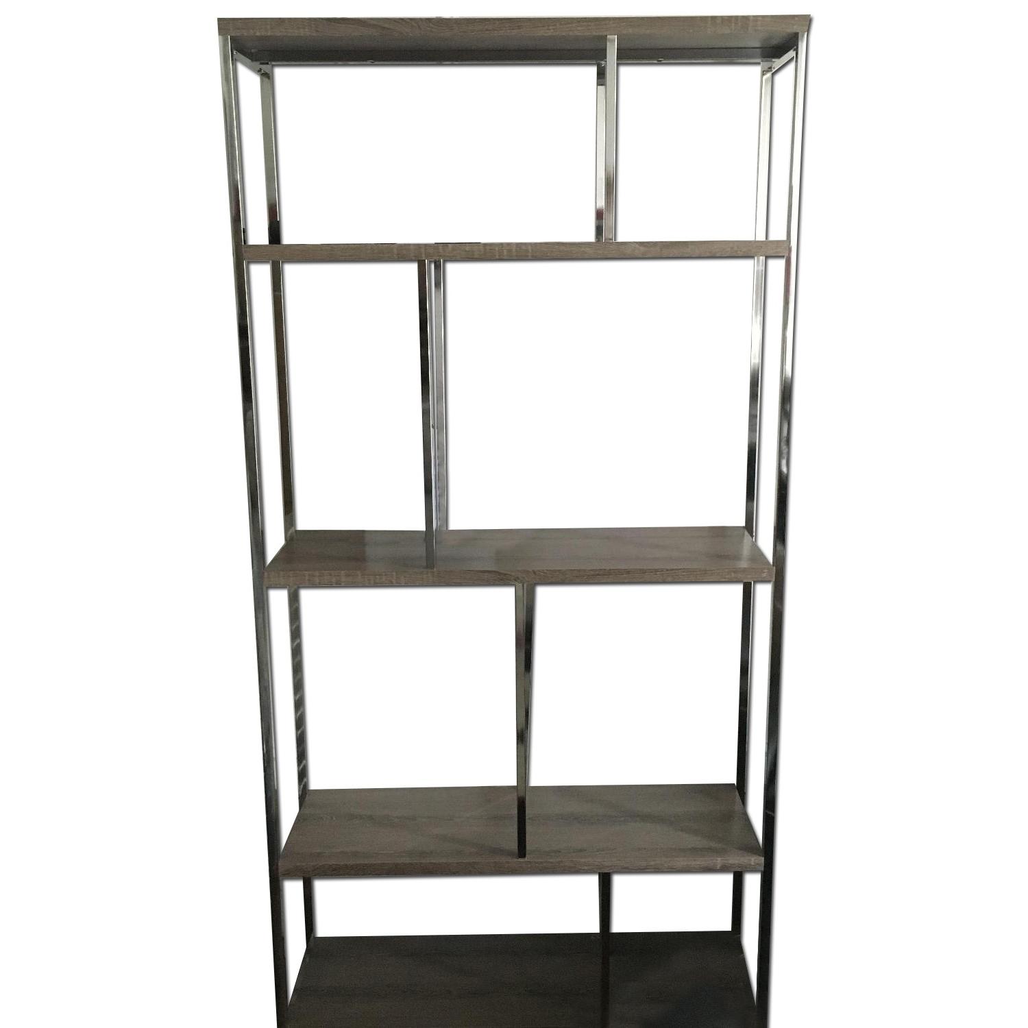 Seller's Notes:Beautiful wood and stainless steel modern bookcase. Selling because it doesn't fit in a new apartment. Like new except one of the legs on the boom shelf is a little crooked, hence the discount.