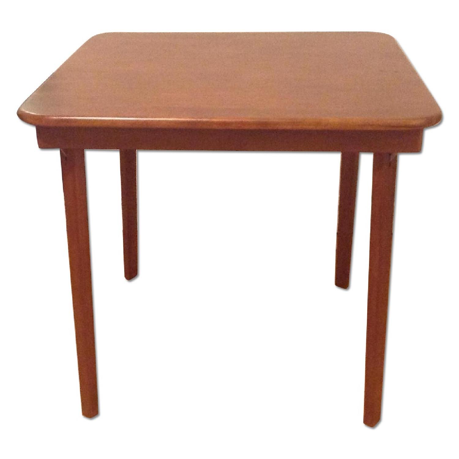 Seller's Notes:Solid wooden card table that is easily used as a dinner table for four people. Folding ability of table useful for storage.