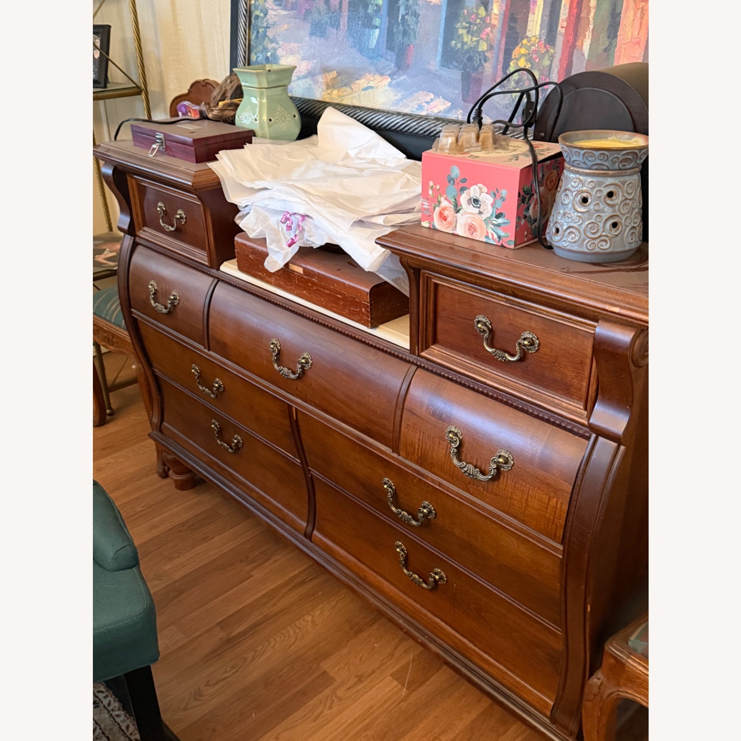 Seller's Notes:About 30+ years old. Stanley furniture with bow front Bombay dresser/buffett with an ivory marble top inset. (See Picture)