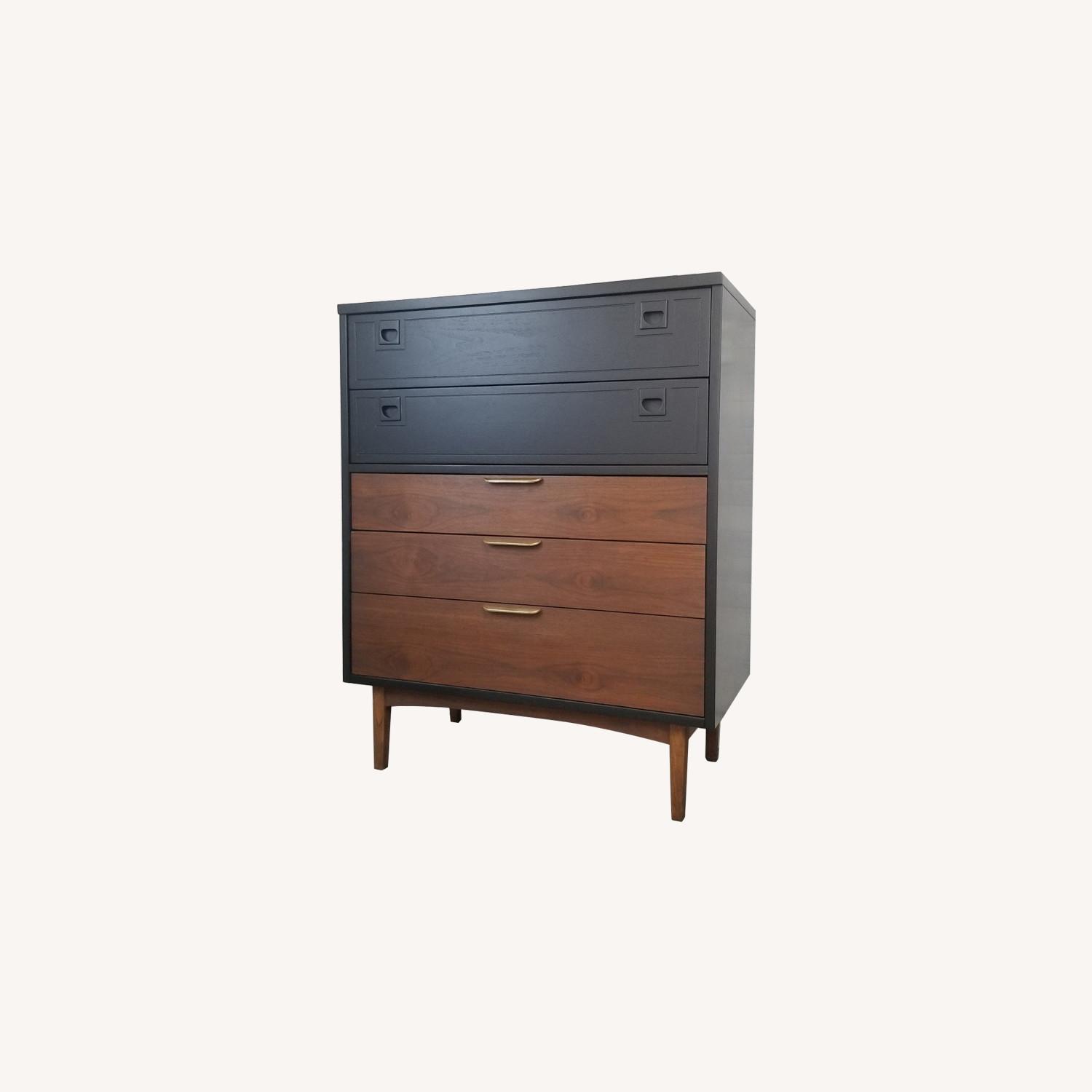 Seller's Notes:Beautifully refinished Mid Century Modern Stanley chest of drawers. Completely refinished into a warm walnut and rich black. Hardware has been refinished into a gold/brass.(I can refinish the hardware again if the color doesn't match your decor) Dovetailed and well-made furniture made to last a lifetime! I am an interior decorator that takes quality vintage furniture and transforms them into high-end designs without the high-end ticket price. Check out my reviews on Etsy under RenoVista and my portfolio at www.therenovista.com. Support your local artisans!!