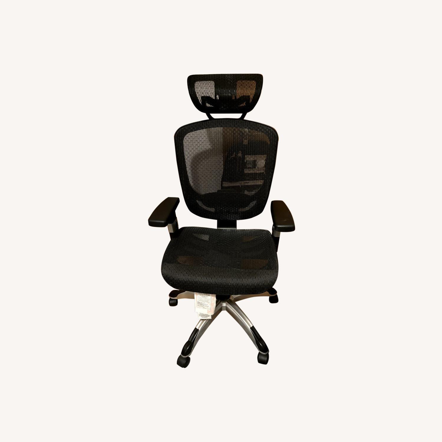 Seller's Notes:This chair served me well during covid WFH and still has many years of life left. A little large for my space now that I don't WFH as much. Dimensions actually range since this chair is adjustable (see below and diagram). Mesh seat, back, and head rest. Overall dimensions: 45.28-49.76"H x 27.1"W x 27.2"D Seat dimension: 17.24-20.98"H x 19.37"W x 16.77"D Back dimensions: 16.42"W x 23.43"D