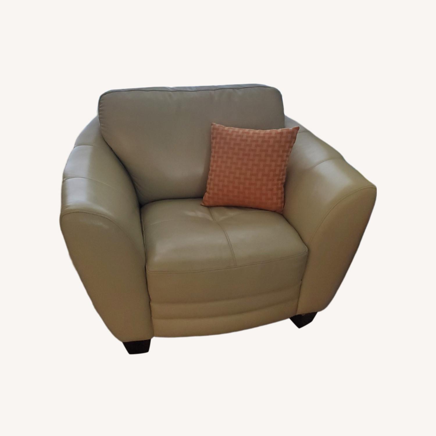Seller's Notes:Beige/Tan Leather Chair - $500 Chair is in great condition (as good as new), originally purchased from Star Furniture 7 years ago. Very sturdy and comfortable to sit on, seat cushions are as comfortable and firm as it was when brand new. Pillows included (if interested)