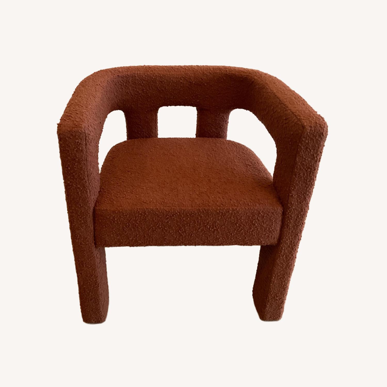 Seller's Notes:boucle chair by Caleb Zipperer brings lounge to the table. Architectural in profile and plush all around, seat sits deep with a rounded back for extra comfort. Expect guests to stay a while. CB2 exclusive.