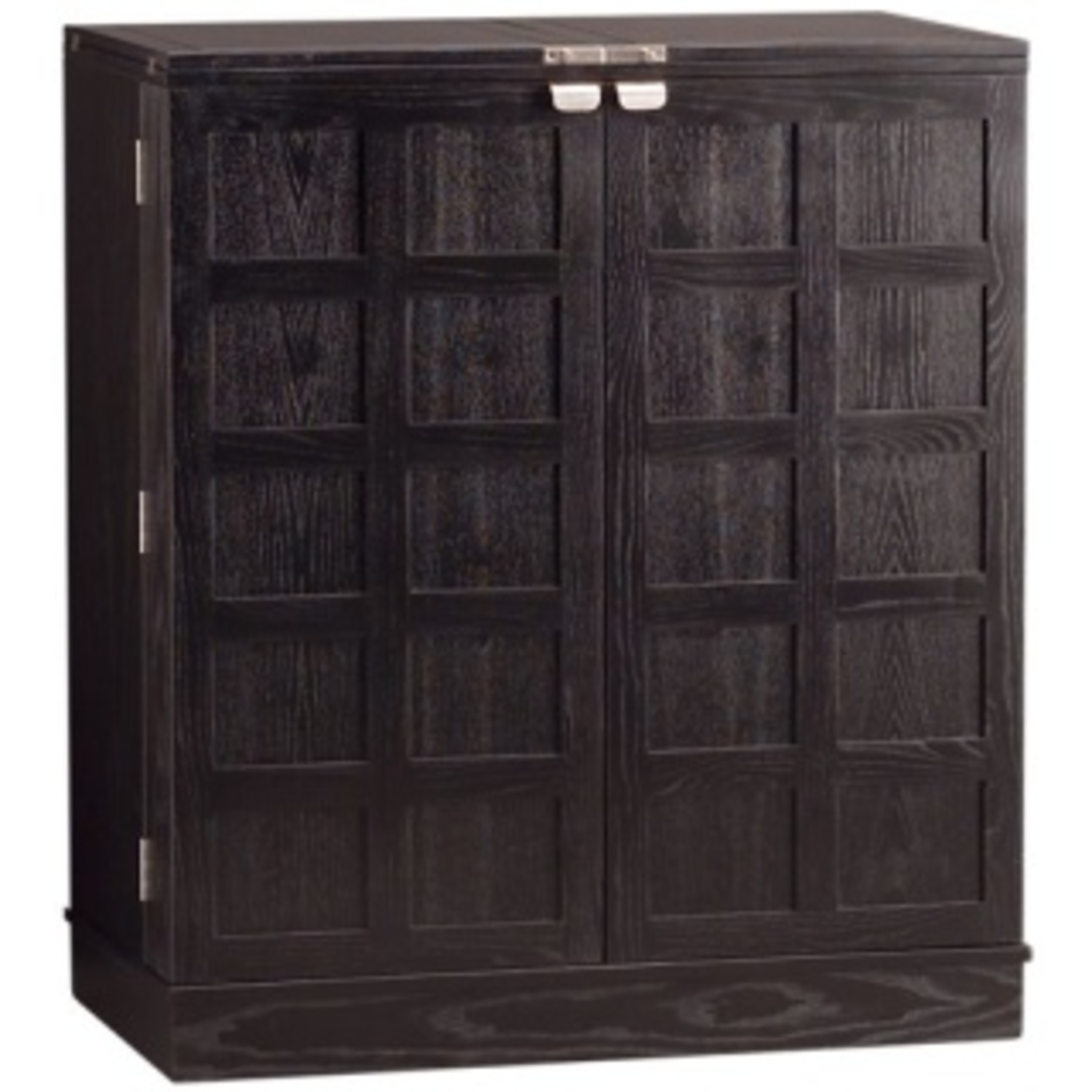 Seller's Notes:Lovingly used, great wine storage and liquor cabinet. Room for 16 bottles in wine rack. Ample additional vertical bottle and wine glass/ martini glass storage and room for rock classes and bar accoutrements. Top opens also for expandable bar table.