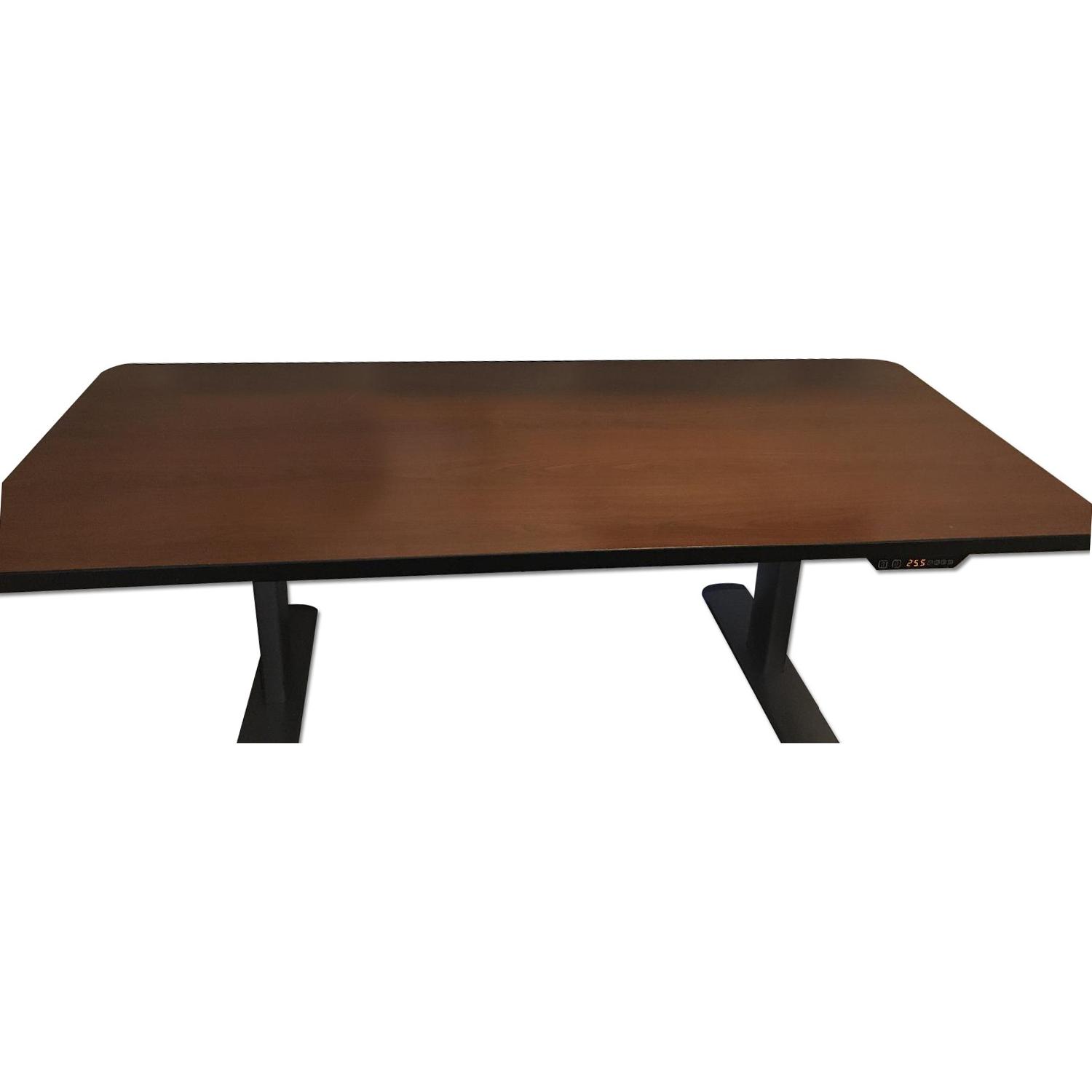 Seller's Notes:A 66x29 urethane profile series 7 desk ( A7RQ662929 ), platinum colored base and laminate surface "Natural Walnut 2714". In really great condition, used sparingly in a home environment. Steelcase cableway product to organize cables behind desk is included. This is really a great desk for switching between standing and sitting (and selecting the exactly right sitting and standing heights)! Monitor and mount seen in pictures not included.