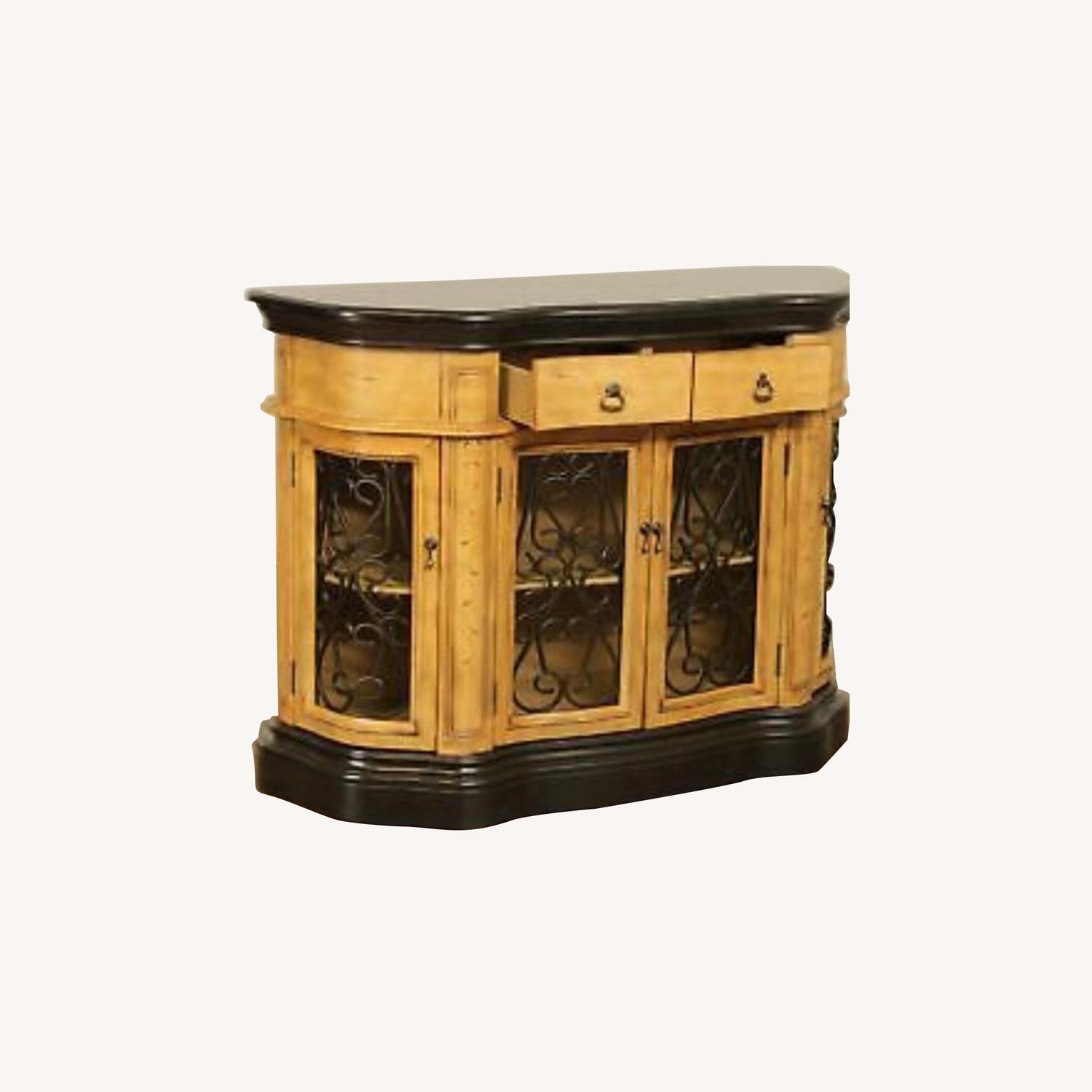 Seller's Notes:The Canterbury Traditional Granite-Topped Credenza by Stein World features a hand-painted 2-toned antique finish with wrought iron scroll doors. The sleek granite top increases its usefulness in your dining room or entry hall. Handsome mix of materials. The Canterbury Credenza from Stein World is a sideboard with extraordinary detail work and finishing 2 drawers and an interior shelf provide ample storage 2-tone antique tan and walnut finish pairs beautifully with wrought-iron scrollwork Black granite countertop provides durable, easy-to-clean work surface 60% MDF, 20% iron, 20% granite No assembly required Overall dimensions 50.75" L x 18" W x 37.5" H Drawer dimensions: 9.75" L x 12.75" W x 2.75" H Weighs 201 lb. Imported skuId: 46763525