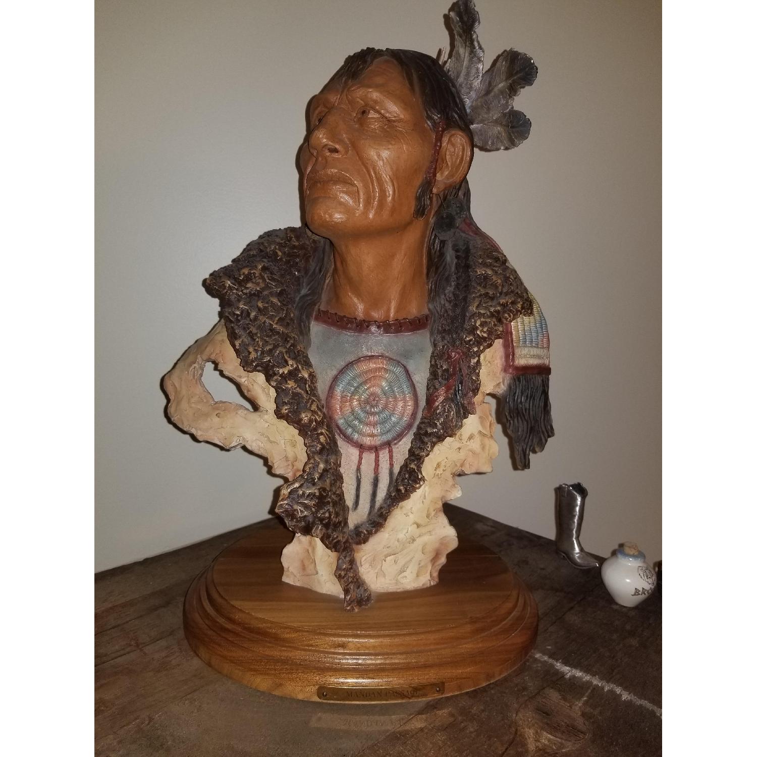 Seller's Notes:Description: Large Lim. Ed. Stephen Herrero sculpture entitled "Mandan Passage" #104 / 2500 depicting a Mandan Native American, measuring 20.5" tall, excellent condition.