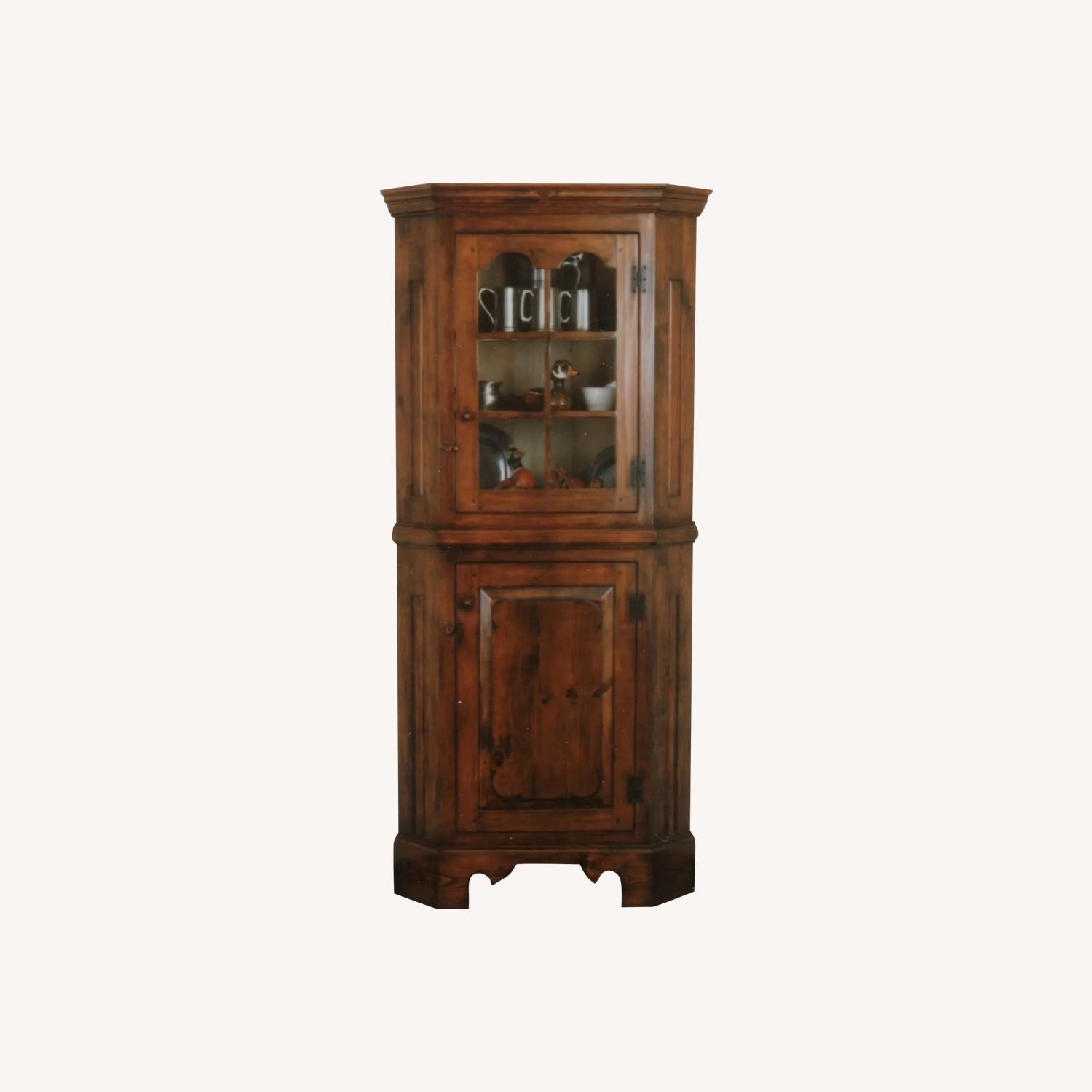 Seller's Notes:Beautiful hand-crafted corner cabinet from prestigious Stephen von Hohen furniture company. In excellent condition, all glass panels intact and undamaged and only minor surface-level scuffs to the interior walls. Catalogue photo with item number (#110) and name highlighted attached in case you would like to do any further research on the model.