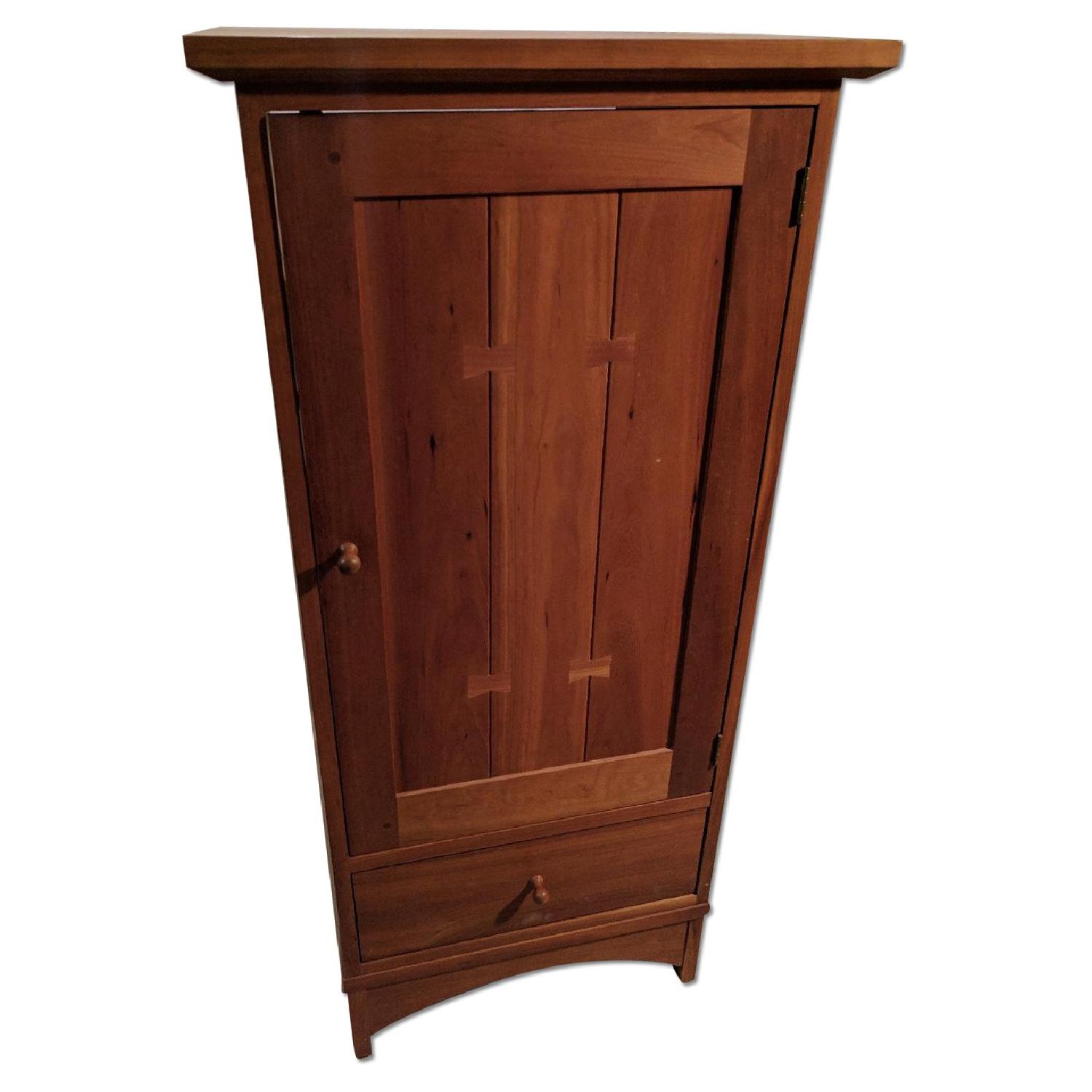 Seller's Notes:This is a Stickley computer/audio unit with 4 interior shelves. This piece is in good condition and sold new for $3200.00. This audio unit is made of solid cherry. Has minor little dings (see pic). Includes factory installed power strip inside. Very similar to Stickley Audio Unit 89-1128