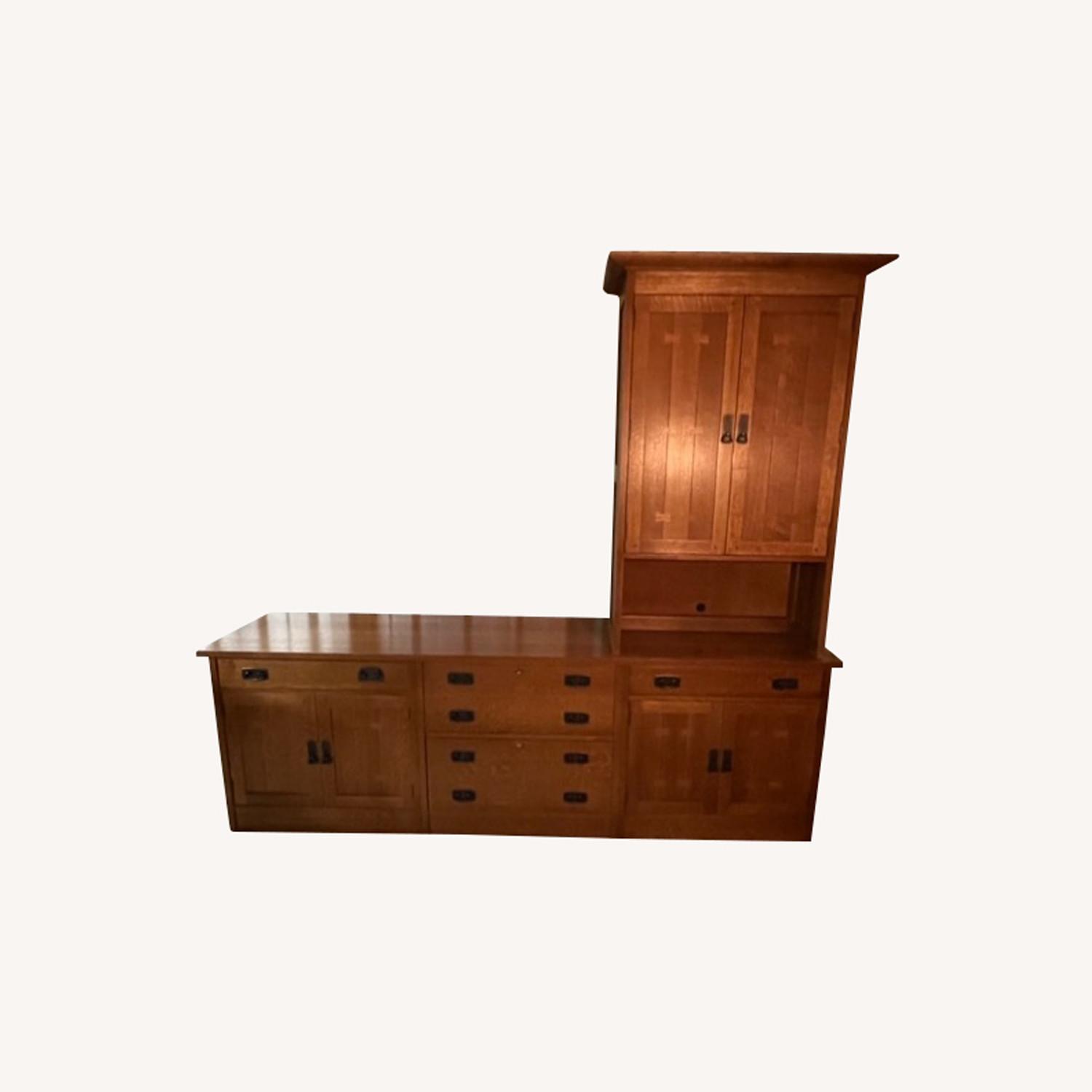 Seller's Notes:Handsome Golden Brown Oak Wall Unit with three cabinets and large center file drawers