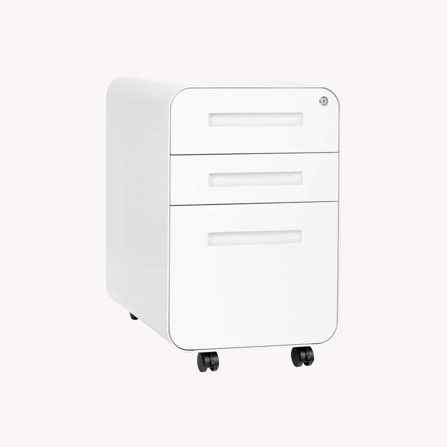 The Stockpile Curve file cabinet from Laura offers beauty and strength not found in your traditional filing cabinet. This modern 3-drawer cabinet is also ready for your US letter or legal-size hanging folders with no additional racks or assembly required. Comes with interchangeable stationary feet and rolling wheels for full mobility as well as a 3 drawer locking mechanism with 2 unique keys.