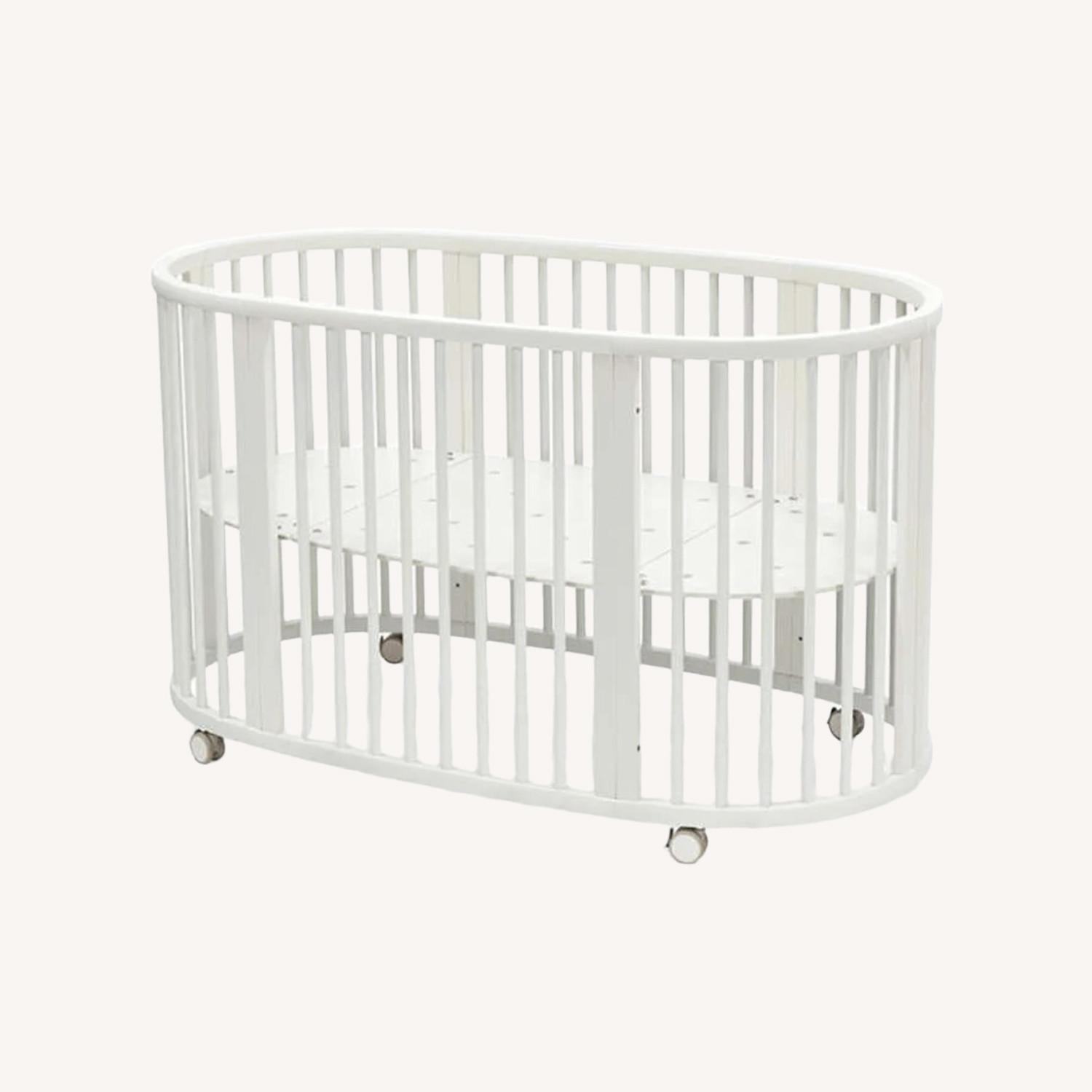 • Classic Stokke design — high-quality beech wood crib suitable from newborn through toddlerhood