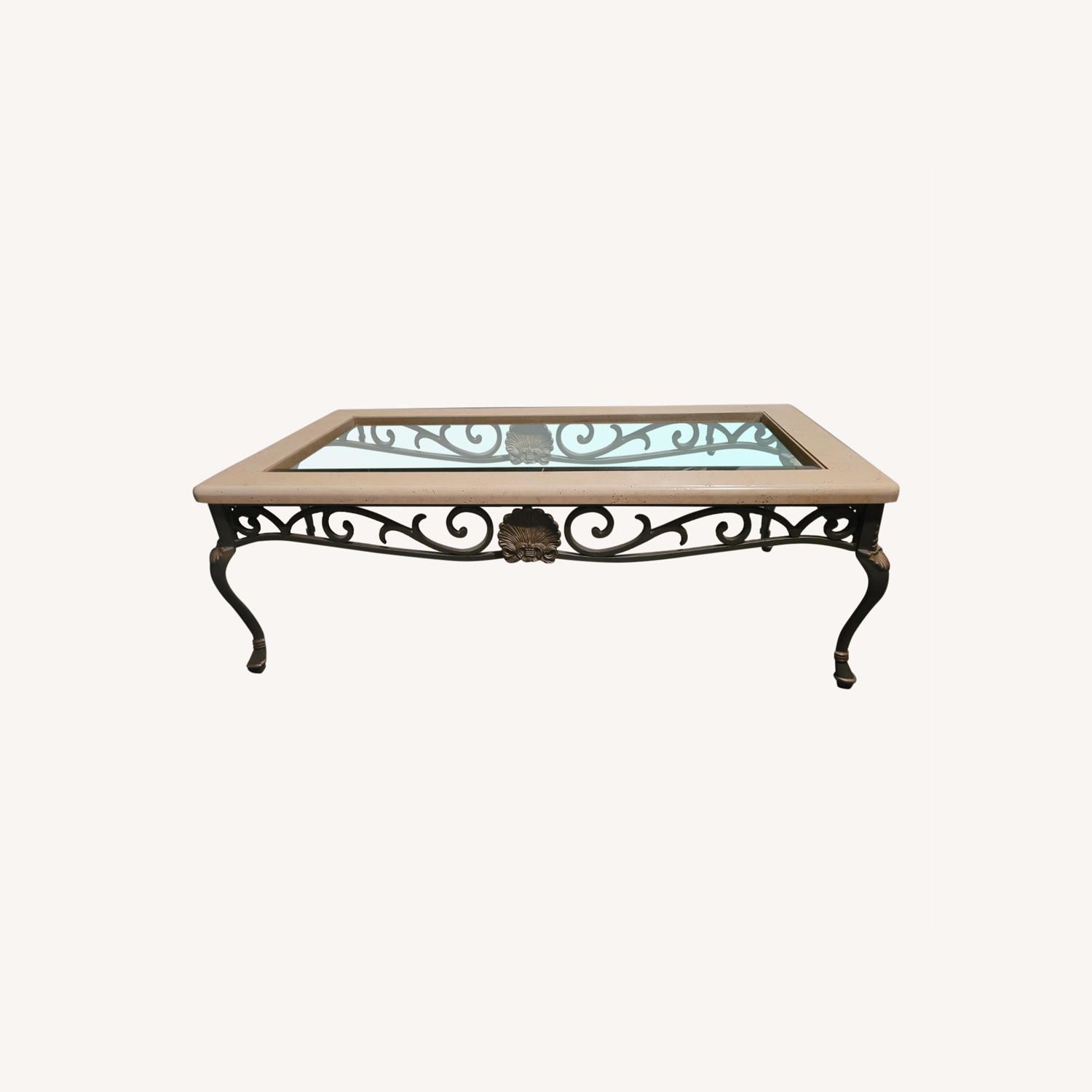Seller's Notes:Sturdy Wrought Iron Coffee Table With stone and glass top