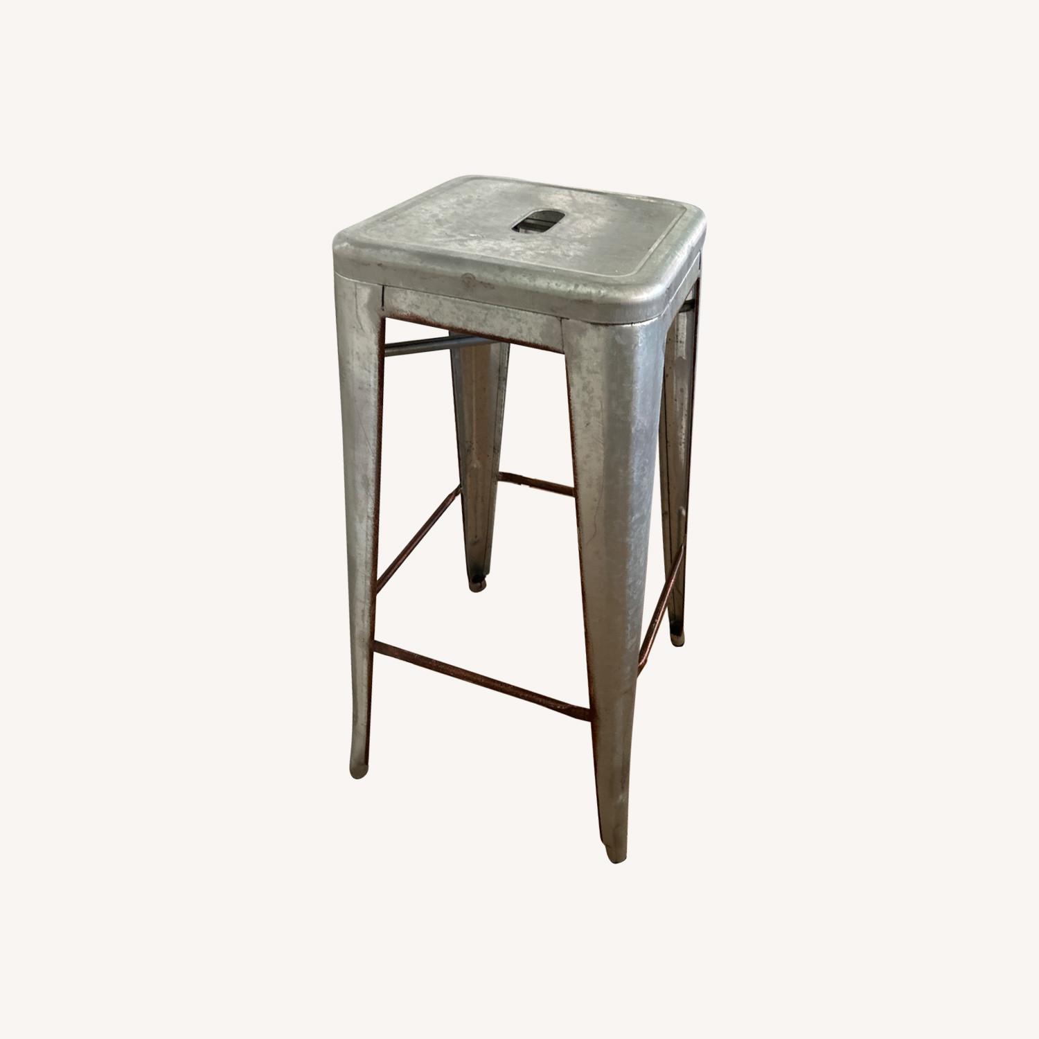 Seller's Notes:Beautiful galvanized Bar Stools. Love them. Can’t take them with me. Set of 4. Each $60
