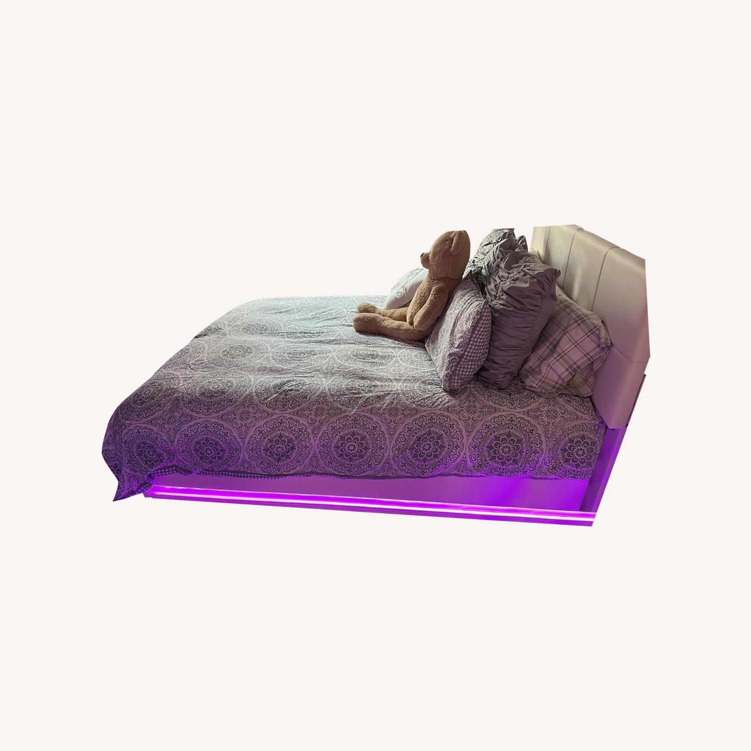 Seller's Notes:White storage bed with LED lights that change color. The bed has a lift-up mechanism for storage. Comes with a remote control.