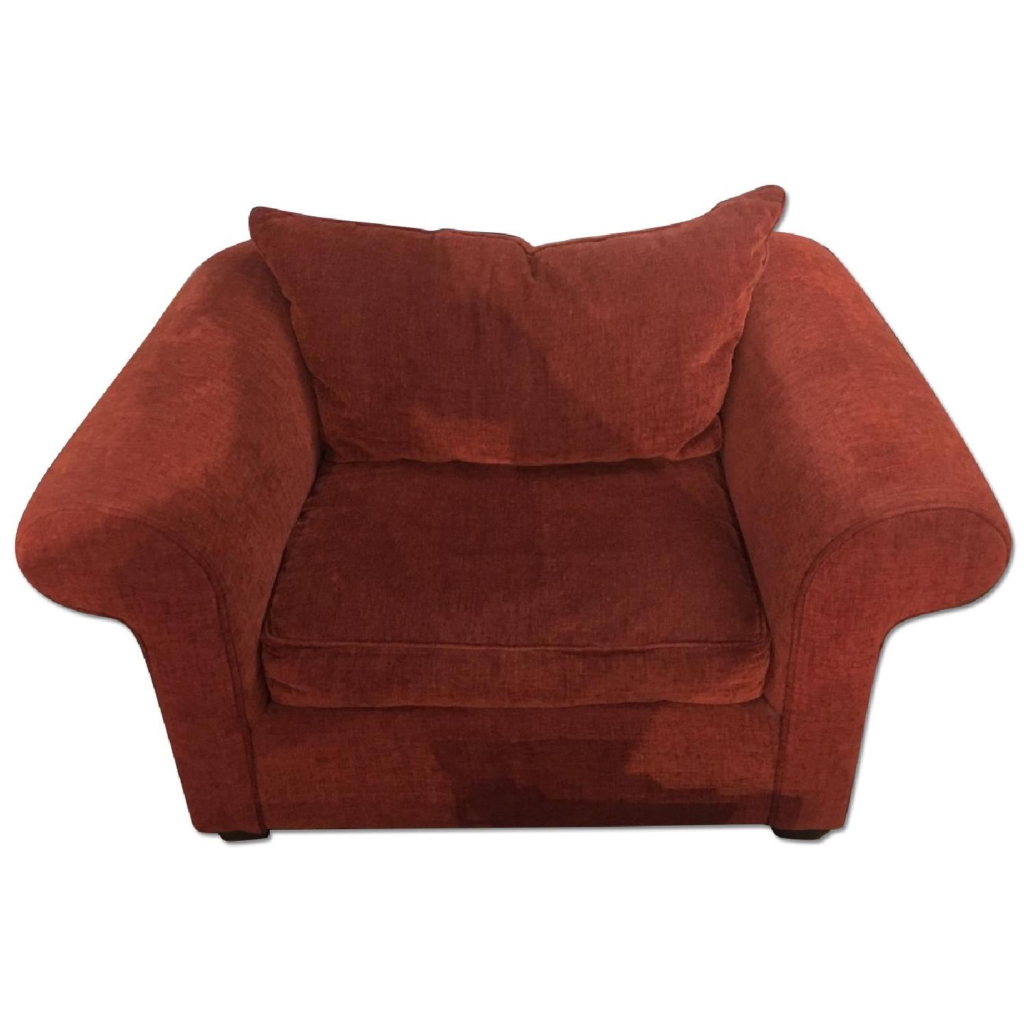 Seller's Notes:Selling my super comfortable, huge single seat sofa chair with ottoman. Ridiculously comfortable, just too big for my apartment. There is a discolored line on the bottom of the back (see pictures) so if that bothers you, you'll want to make sure the back is against a wall or not somewhere else not visible.