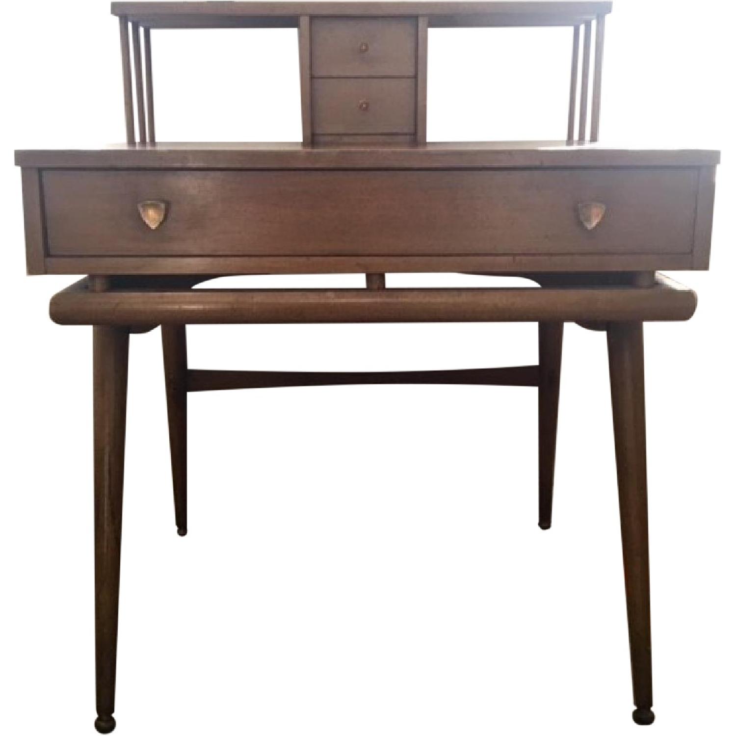 Seller's Notes:Charming midcentury desk with chair. Made in New York by Stratford House. The model name is The Sequence. Has some wear, and an area on a back leg (see pic) that could use some repair. However desk has been enjoyed as-is for 8 years. The weight of it prohibits moving it with me to CA from New York unfortunately.
