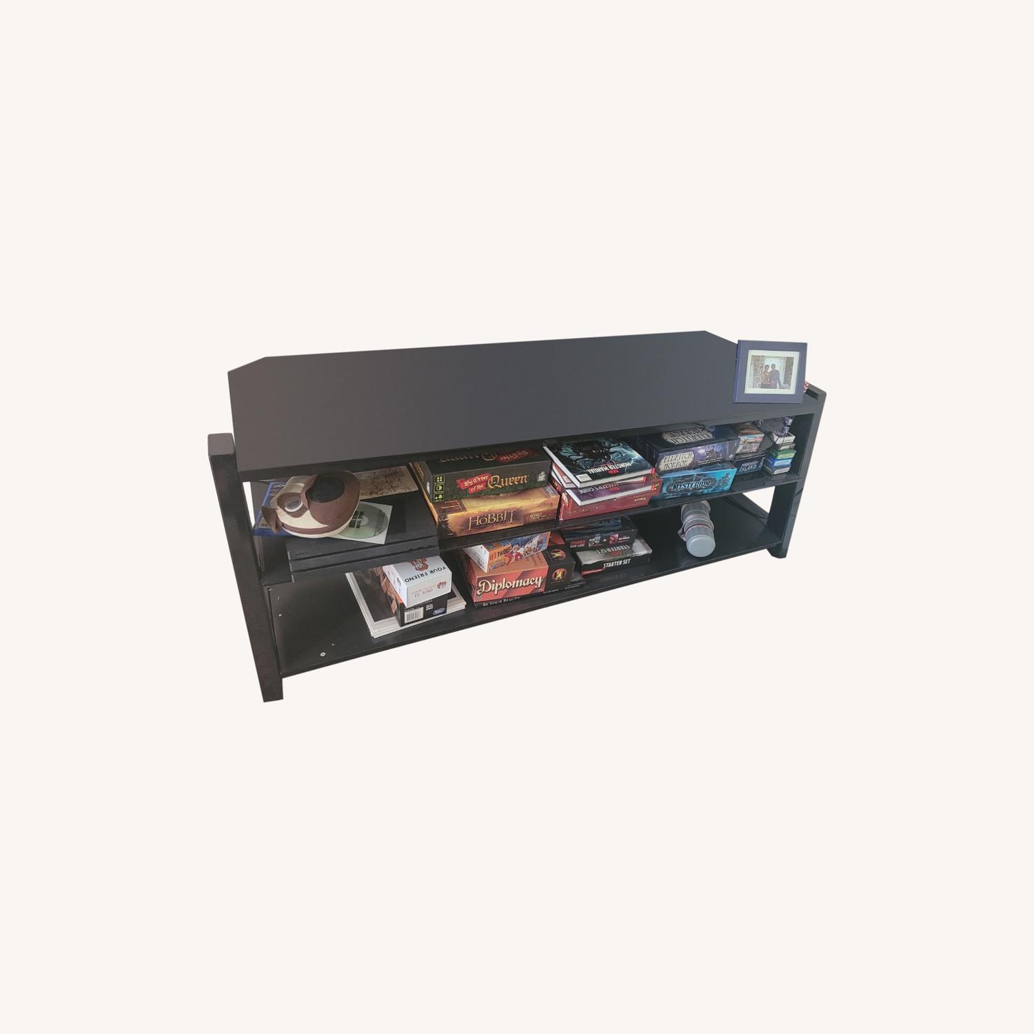Seller's Notes:Metallic TV Stand large enough for almost any TV size. Fits my 49 inch tv comftably with extra space. Has strong shelves and very stable.