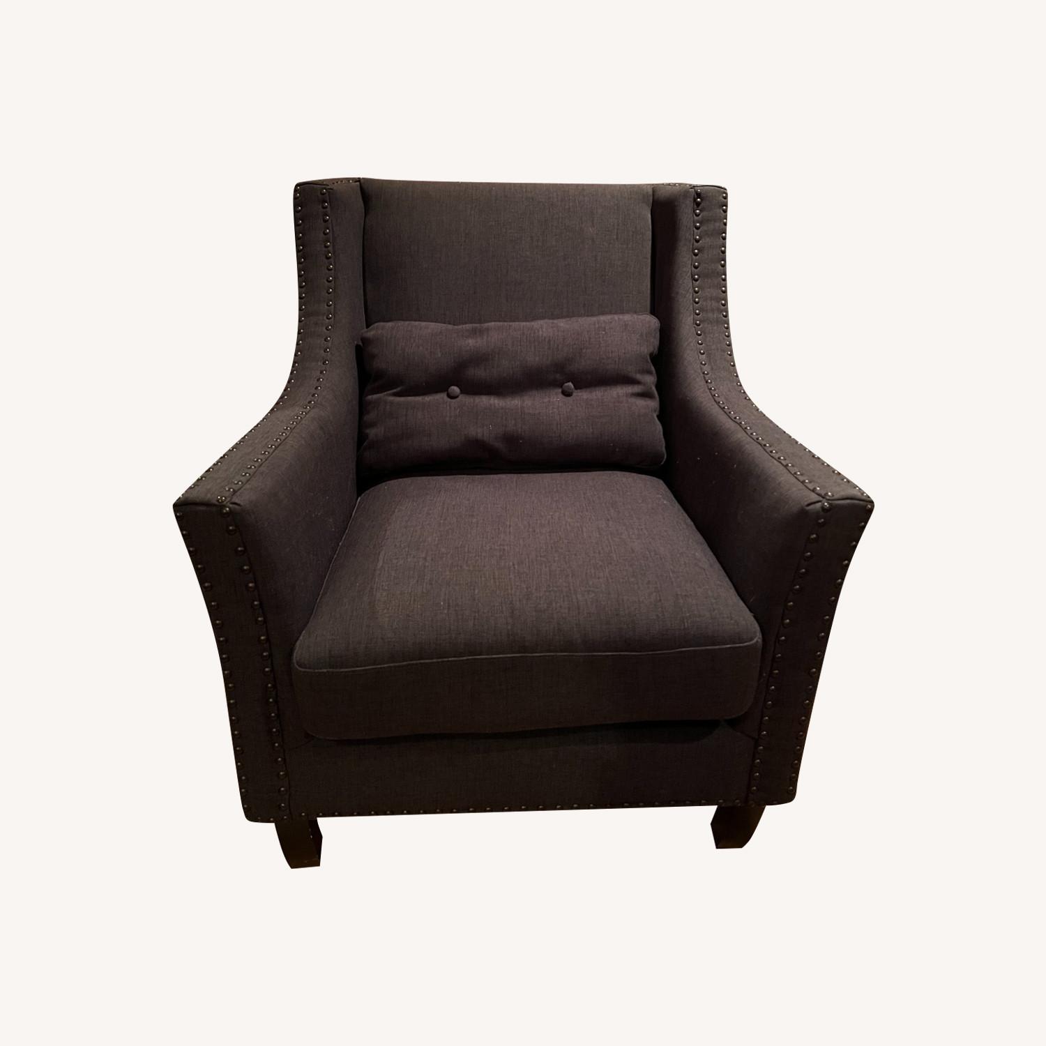 Seller's Notes:I've had this studded club chair for a few years and it's still in great condition with that! I purchased it from a friend who had just bought it, but then also moved shortly after, and never got to asking about the brand unfortunately (the rest of the furniture I purchased from her includes items items by West Elm, Safavieh, and Modani, so with it's quality build I imagine its a brand along those lines). Though it hasn't been used as much as it could be in my current setup, It's a very cozy and classic chair, but I'm moving and unfortunately won't have space for it in my new place.