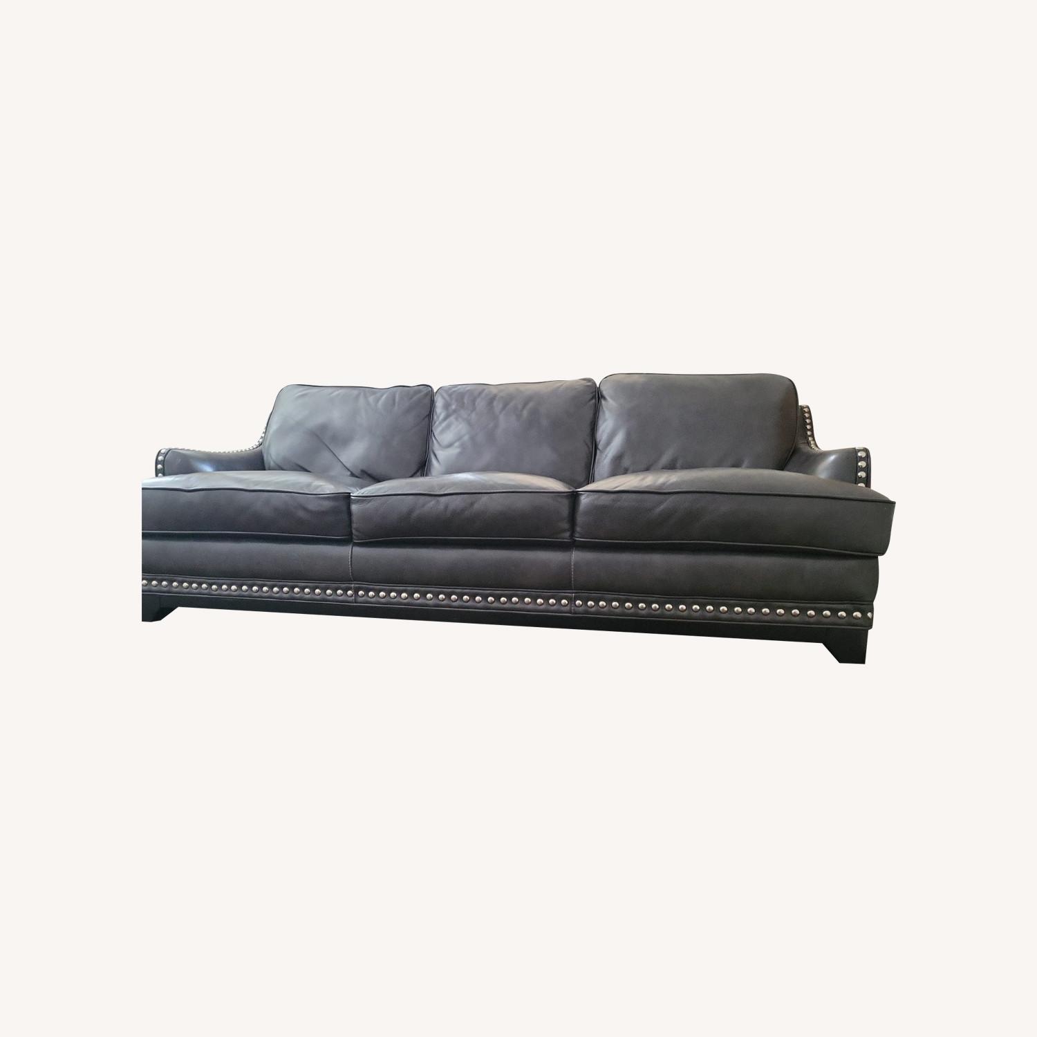 Seller's Notes:This is a beautiful leather sofa with metal studs. Comes with an ottoman.